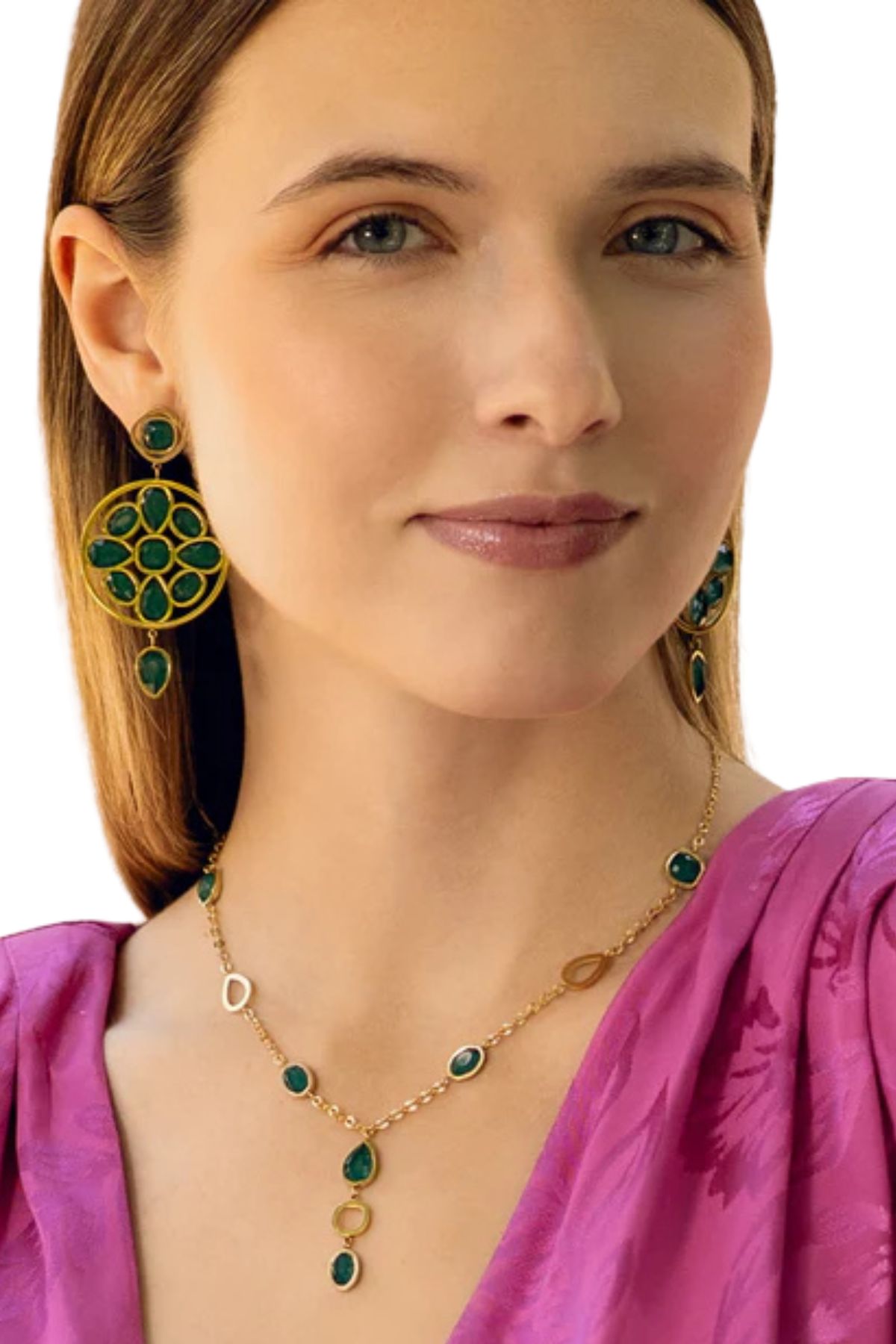 The Lush Drops earrings by Anartxy are the perfect accessory for your most special evenings. Crafted from hypoallergenic surgical steel, they offer comfort and durability, even when wet. Their nature-inspired design, featuring pink, green, and black crystals and a gold finish, adds a sophisticated and elegant touch. Large and eye-catching, with a snap closure for added security, they're ideal for parties and events where you want to stand out with a chic and sophisticated style. Elevate your look with these unique earrings bursting with personality.