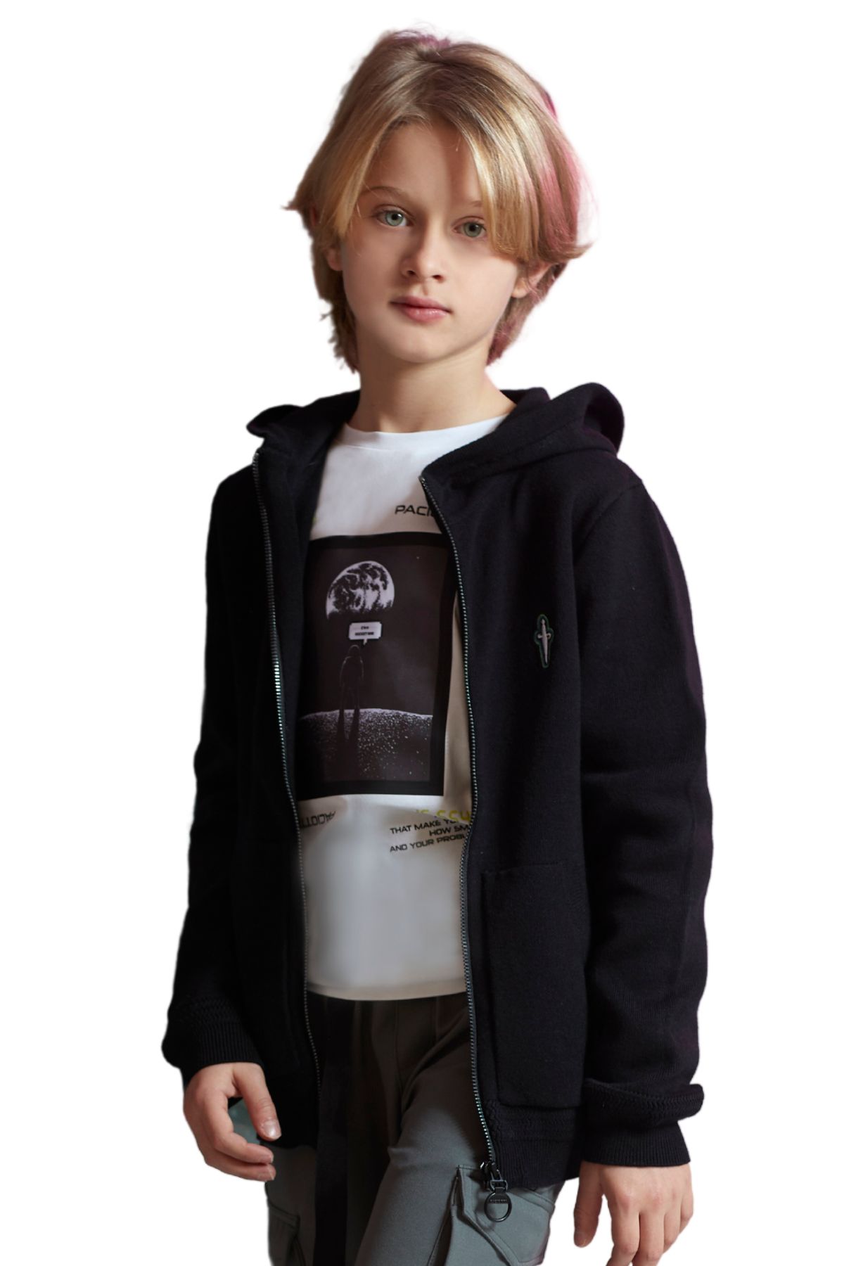 Sweater with zip and hood