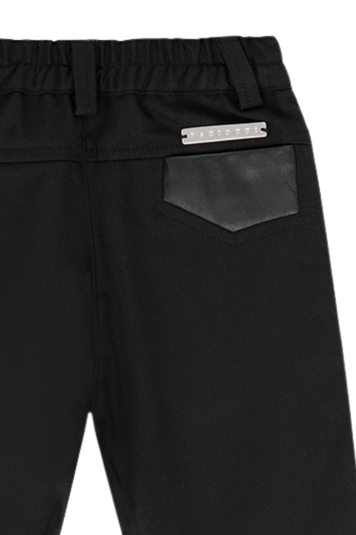 Steel logo plaque on the back with faux leather detail (faux pocket)