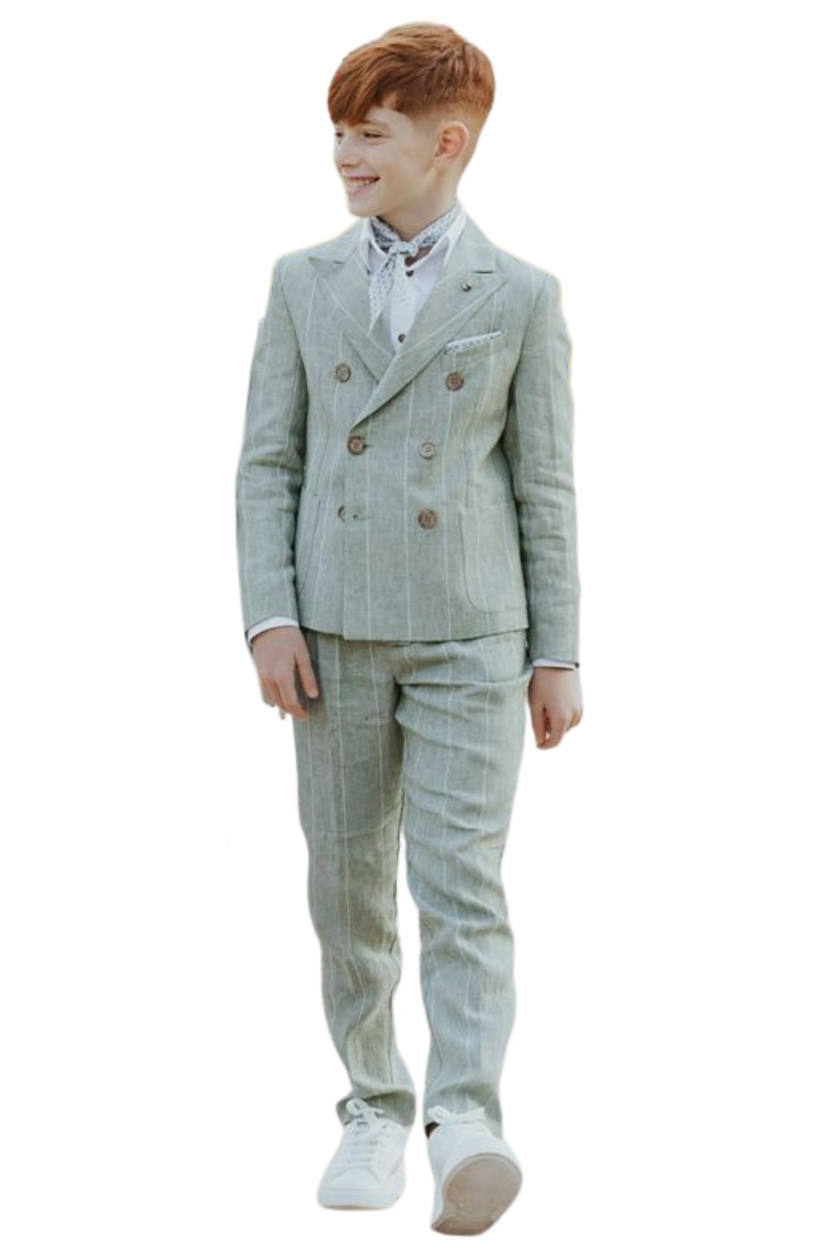 100% linen jacket, double-breasted with peak lapels, horn-effect buttons, and a tie-print pocket square in the pocket