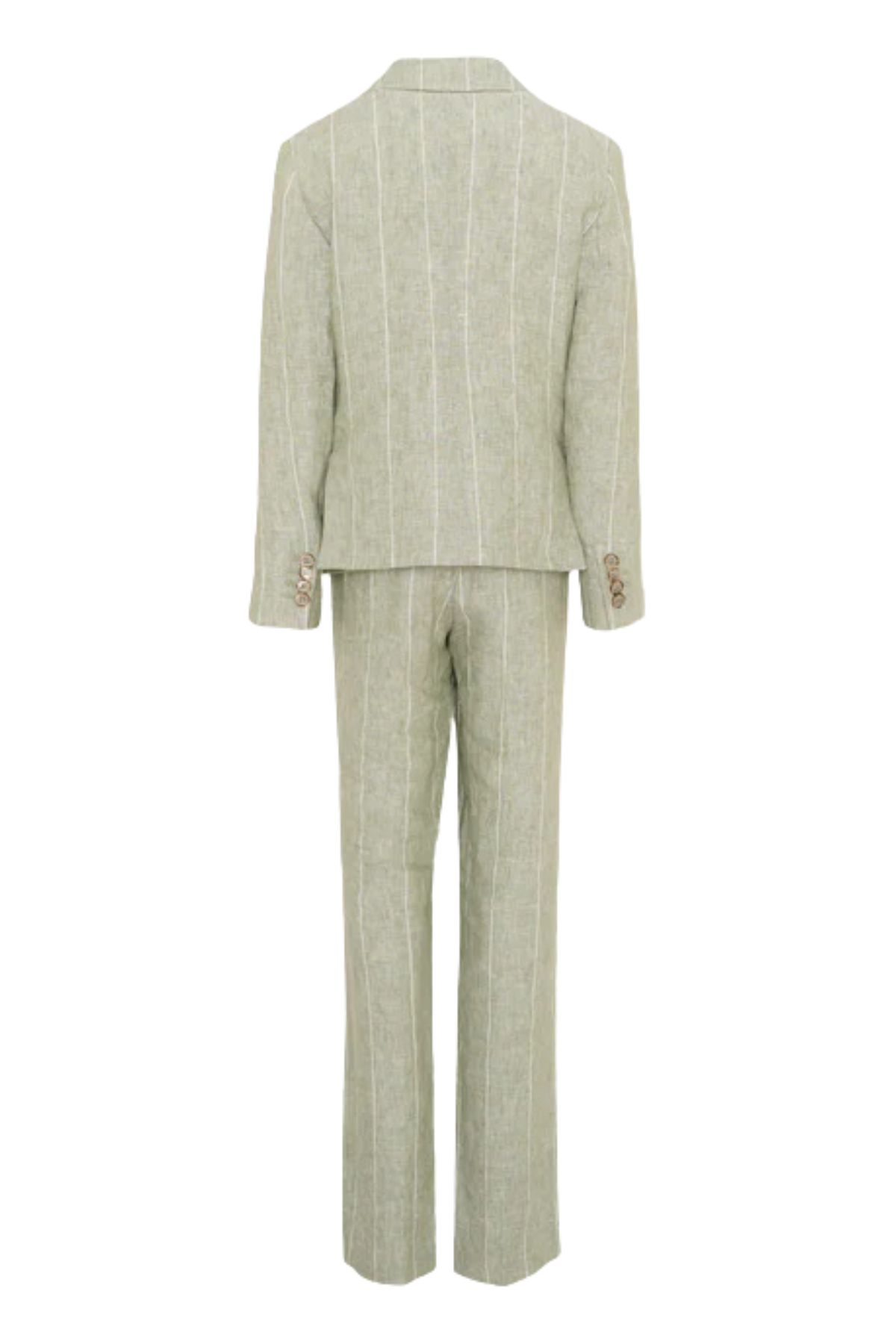 Suit in a slim-fitting green fabric with a slightly slub weave