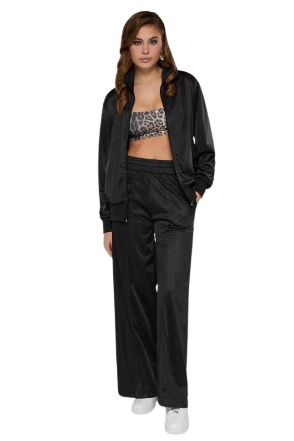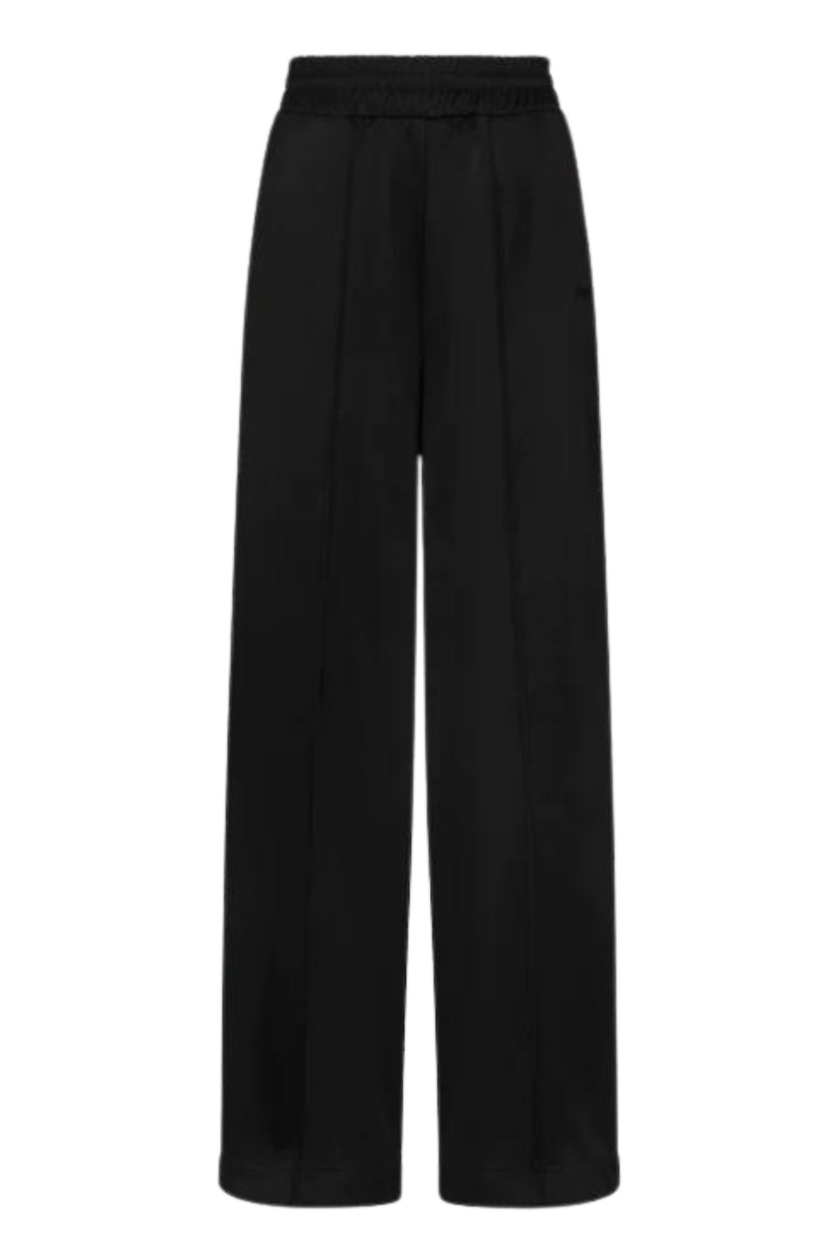 Black palazzo trousers in shiny acetate fleece