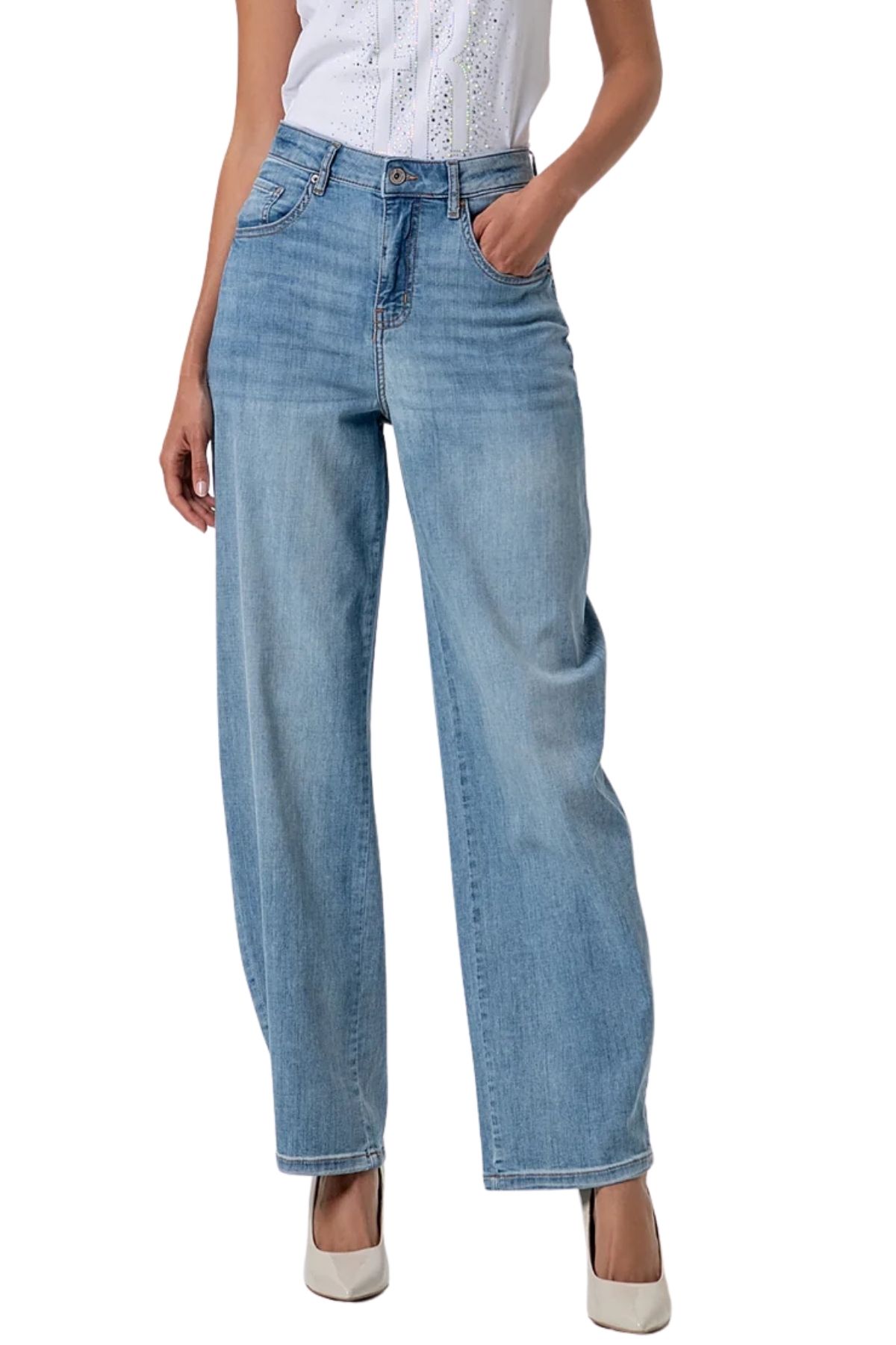 Five-pocket design and straight hem