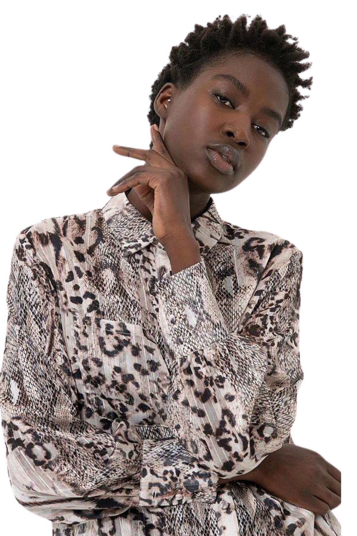 Regular shirt in georgette with animal print