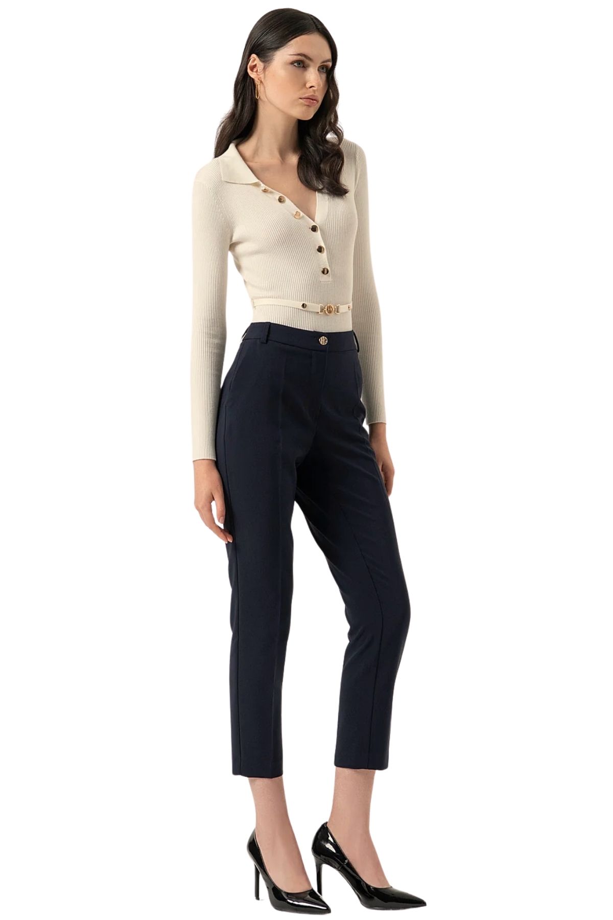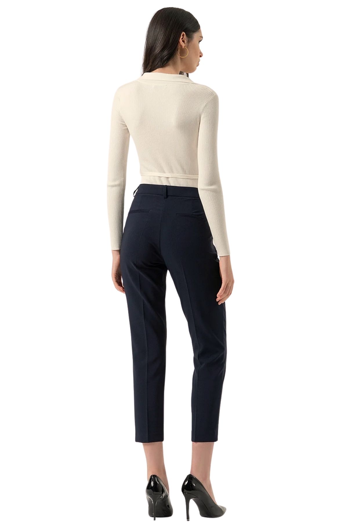 Regular waist, slant pockets, back welt pockets, and straight hem.
