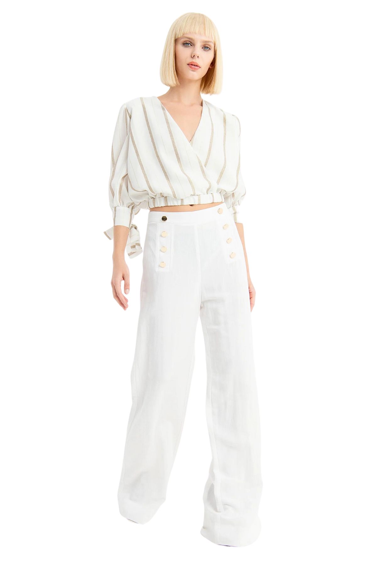 High-waisted palazzo trousers with gold buttons