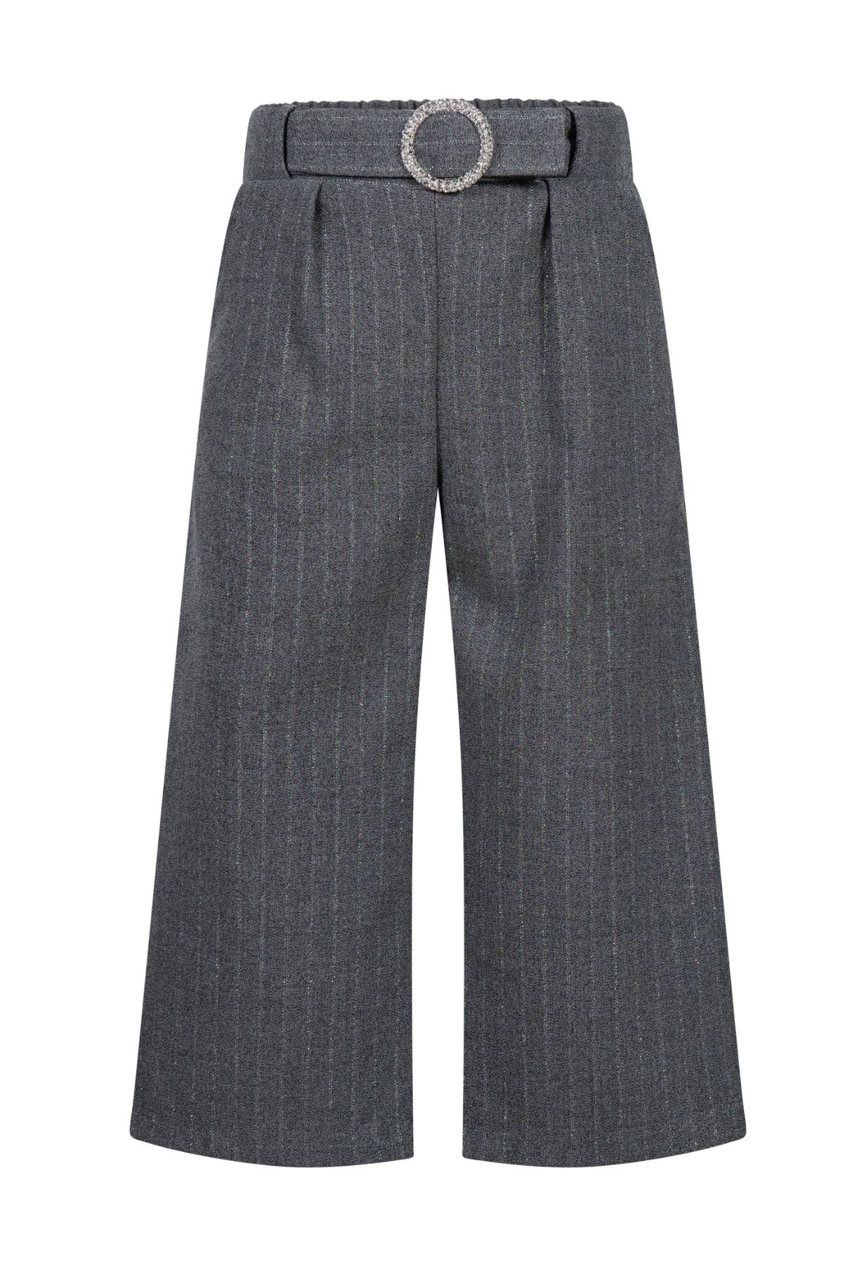 Pinstripe trousersHigh waistModel with wide and straight legIn silver lurex pinstripe fabricWith fabric belt and round jewel buckle