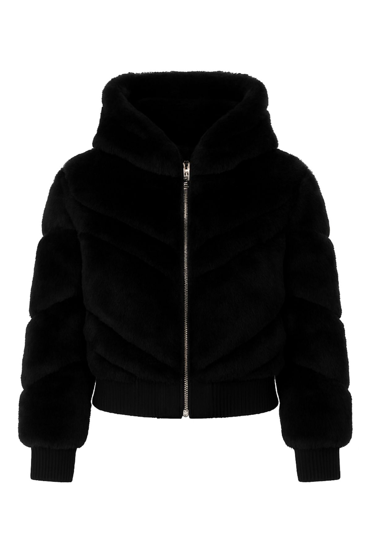 Faux fur bomber jacketJacket with matching faux leather inlaysRibbed trim and faux fur hoodFront zip closure with two metal sliders100% Nylon