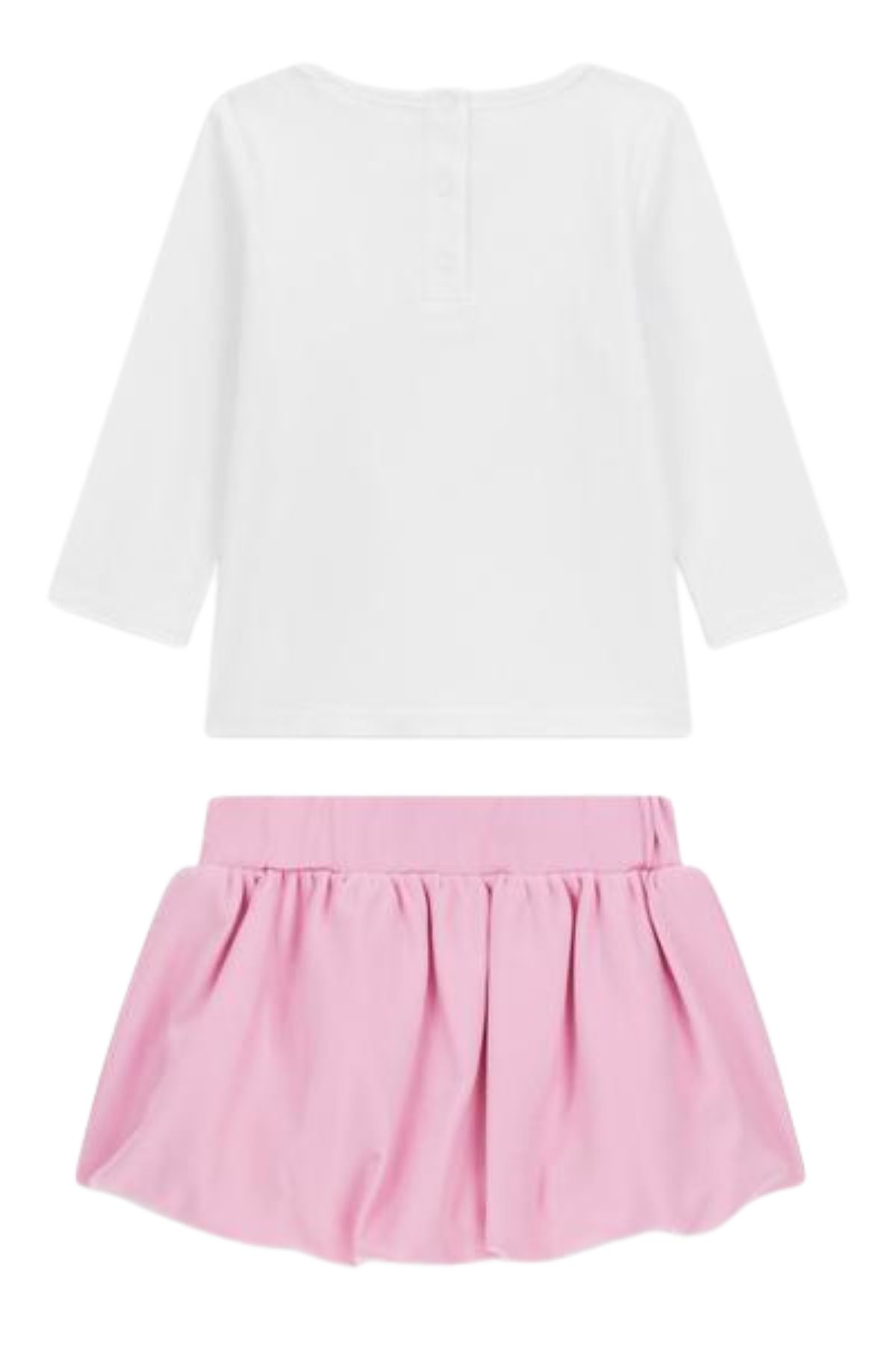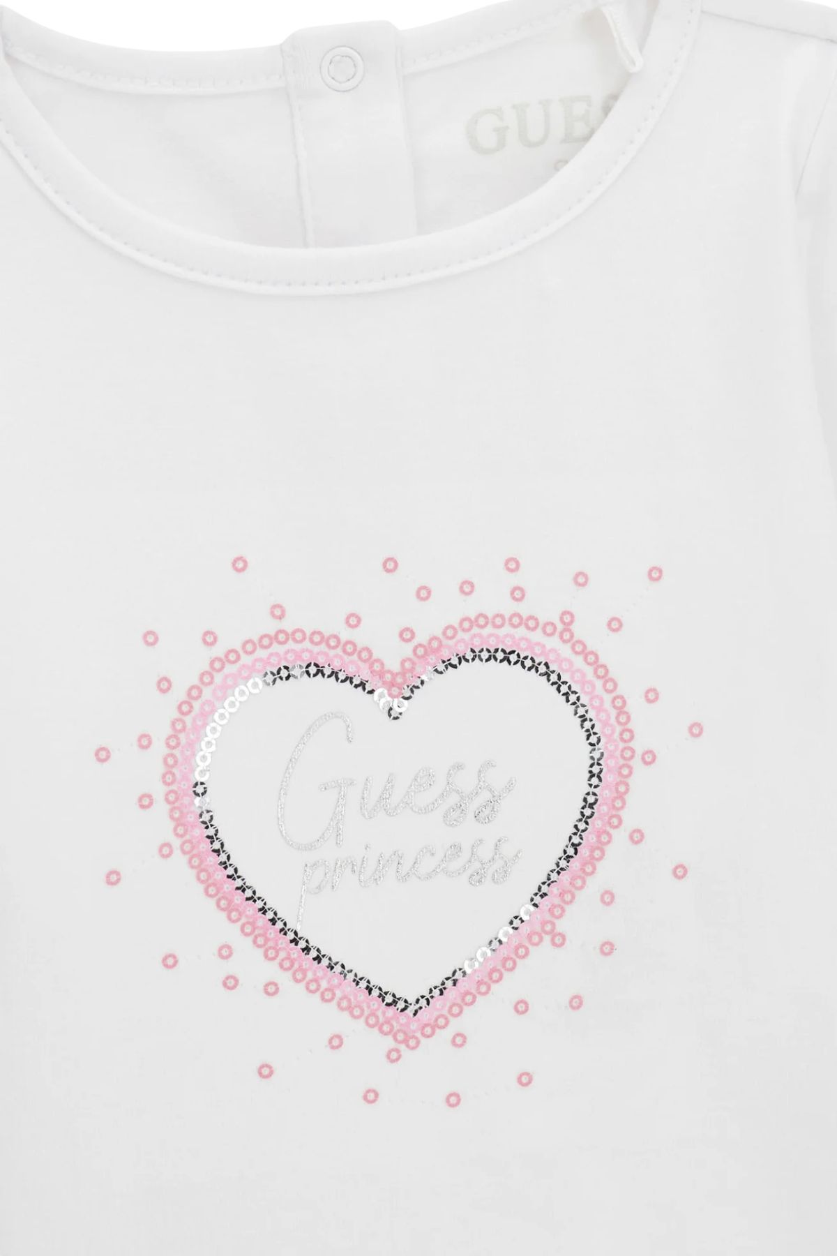 White long-sleeved top decorated with a heart-shaped detail and sequined logo