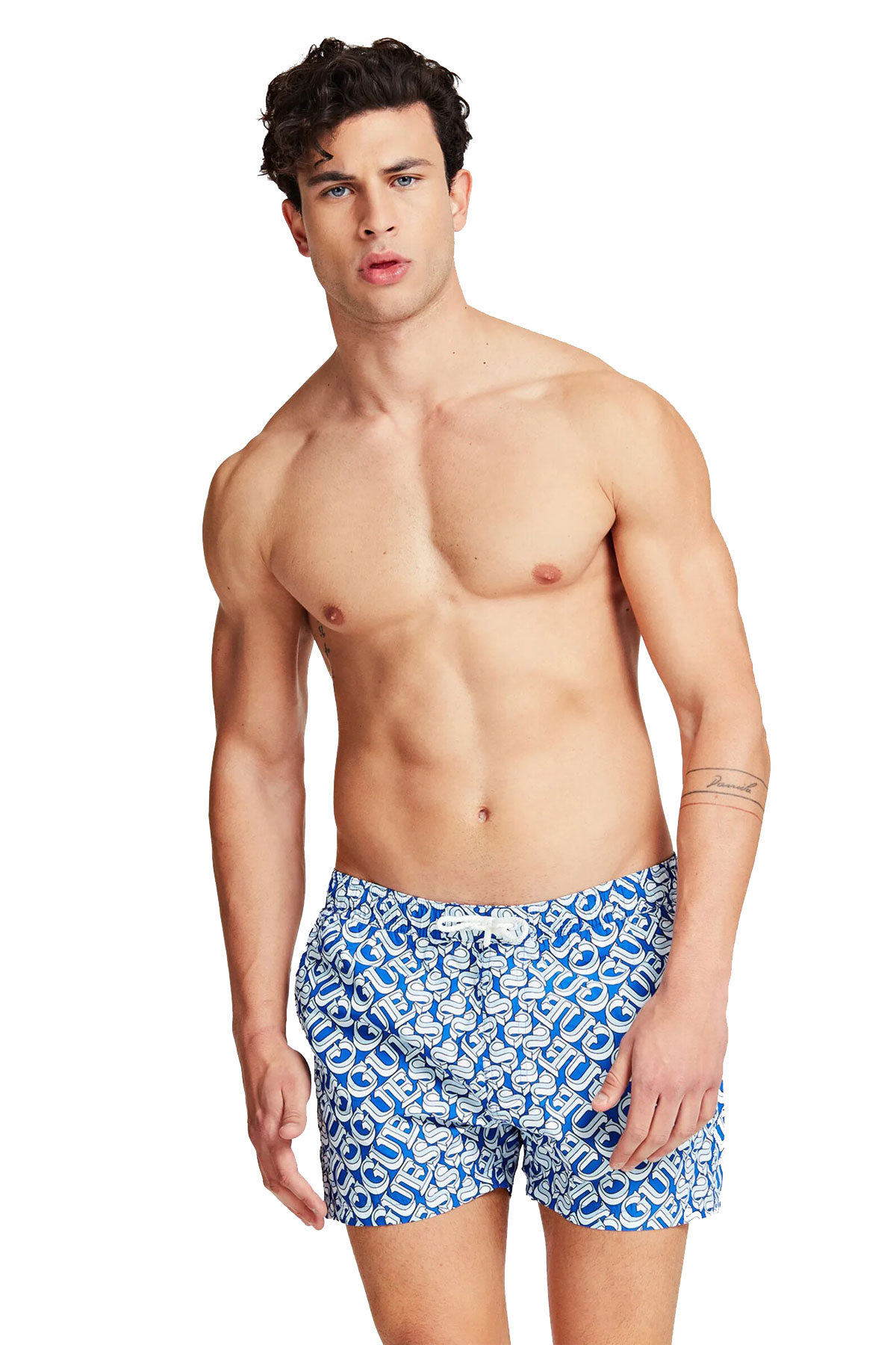 GUESS, Swimsuit with shorts all over logo blue man boy