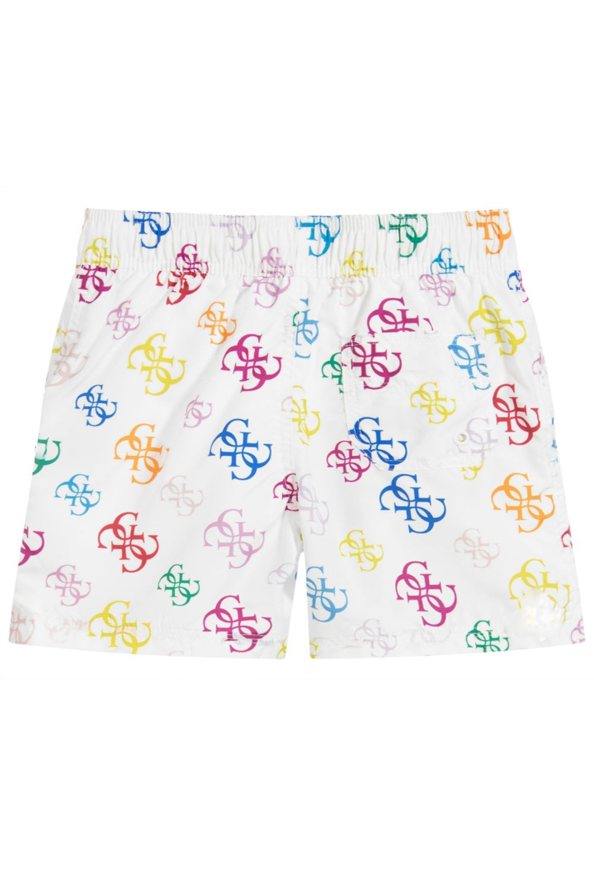 GUESS, White swimsuit with bermuda shorts multicolor logo all over boy child