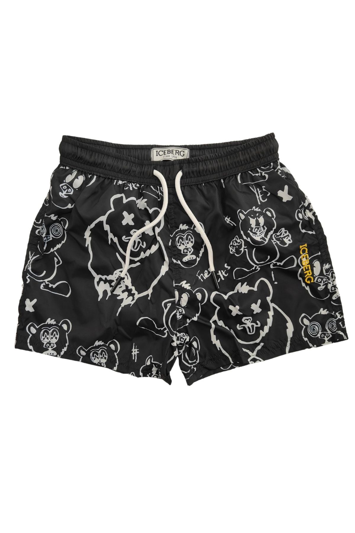 ICEBERG swim trunksBlack patternElastic waistband with drawstringBack pocketPolyester fabricInternal mesh
