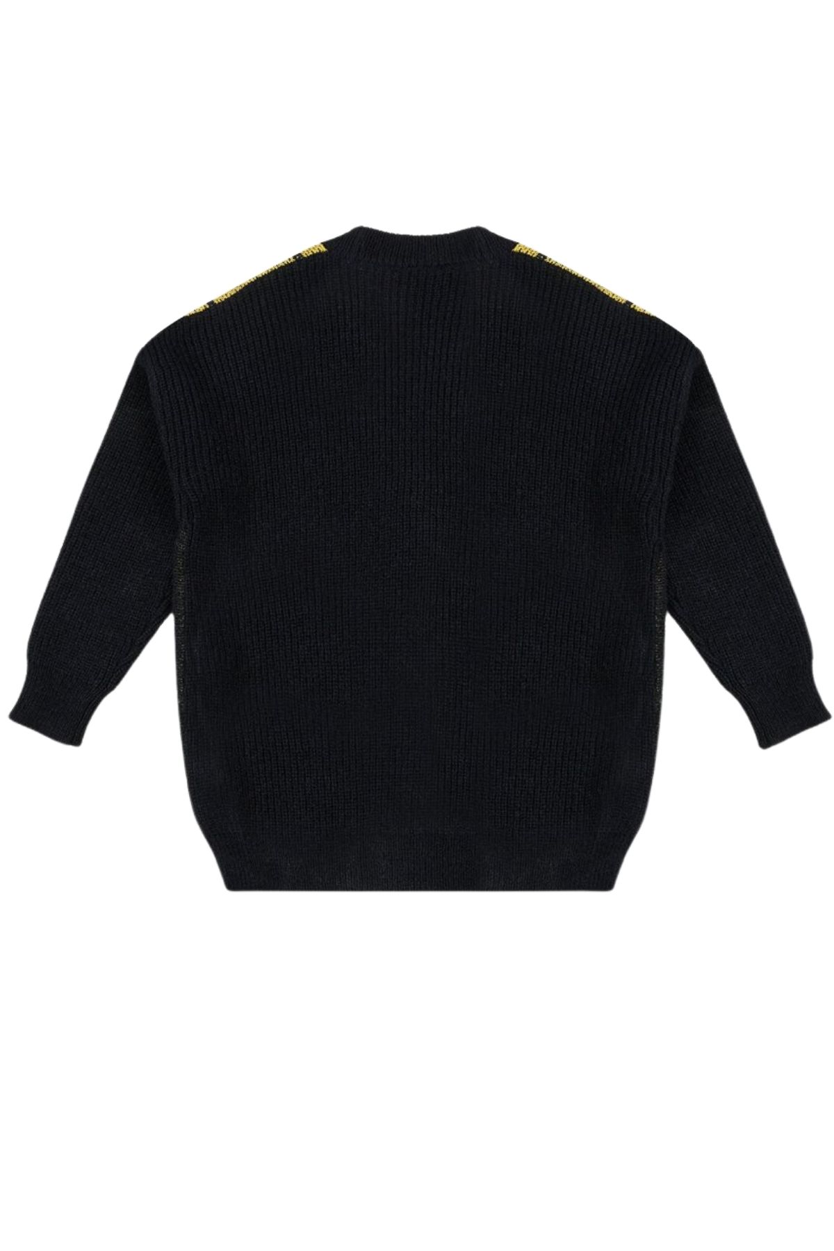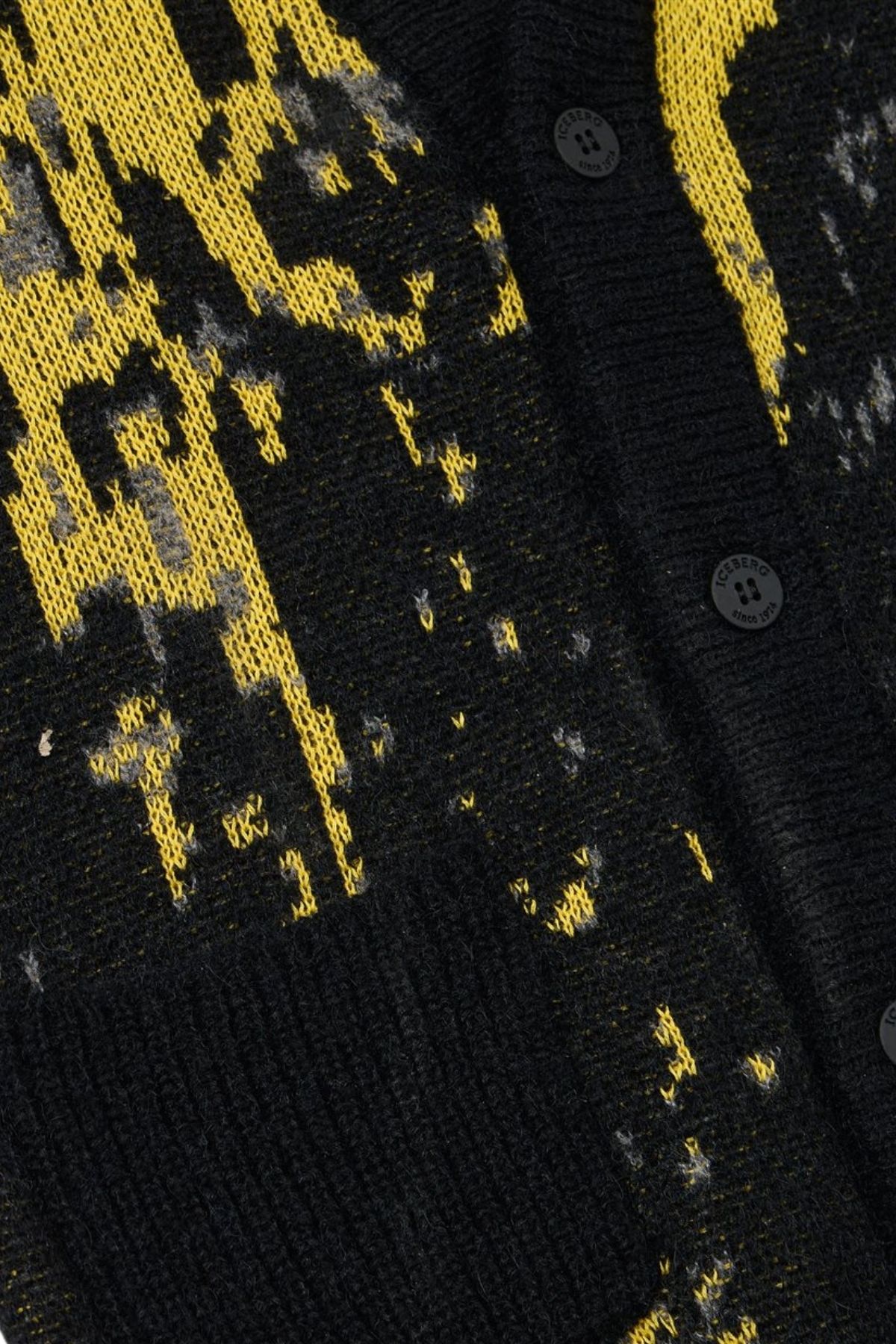 Black wool cardigan with yellow and white patterned details ICEBERG