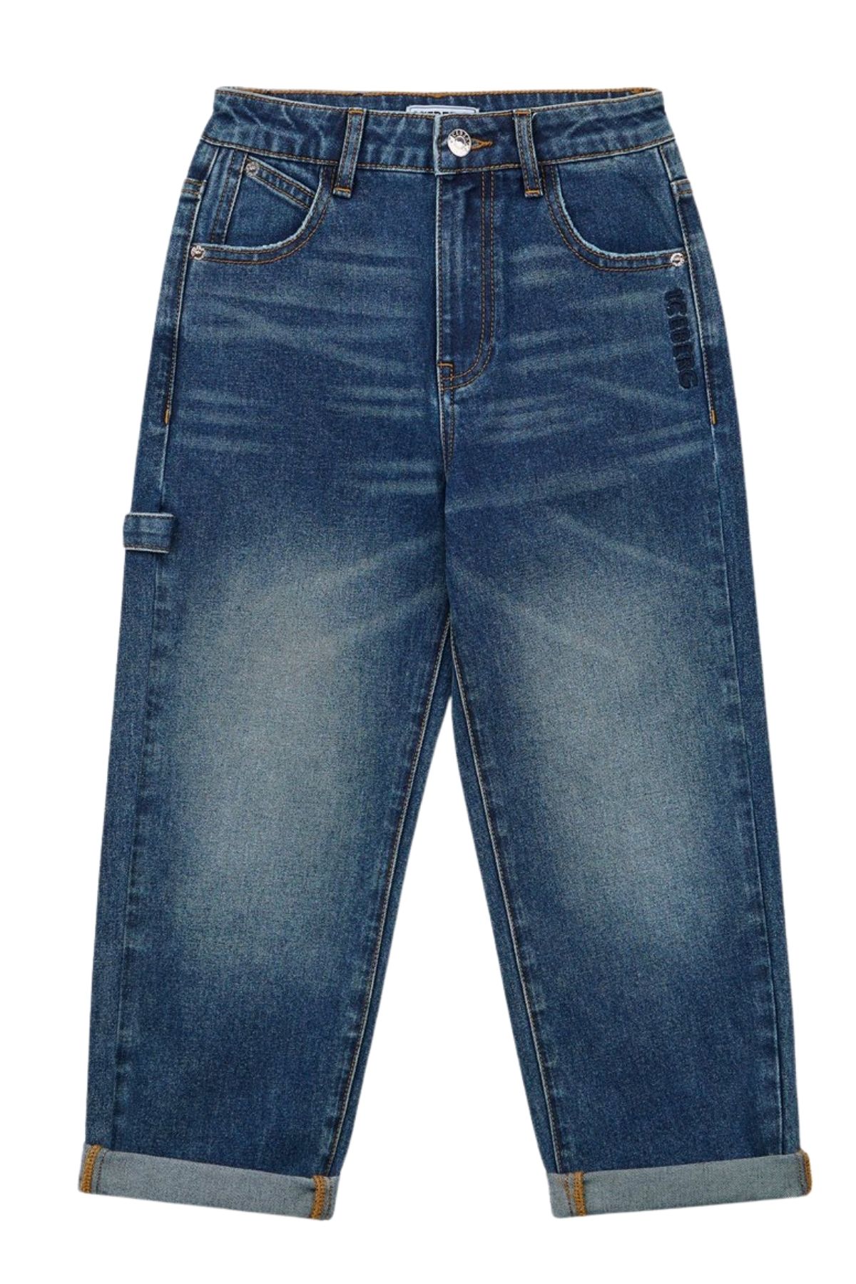 These wide-leg indigo denim jeans stand out for their turn-up detail, giving them a contemporary and relaxed feel.