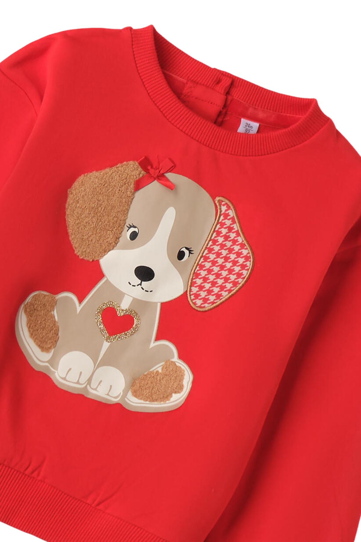 Embellished with a print, appliques, and terrycloth embroidery, glitter, and a small bow