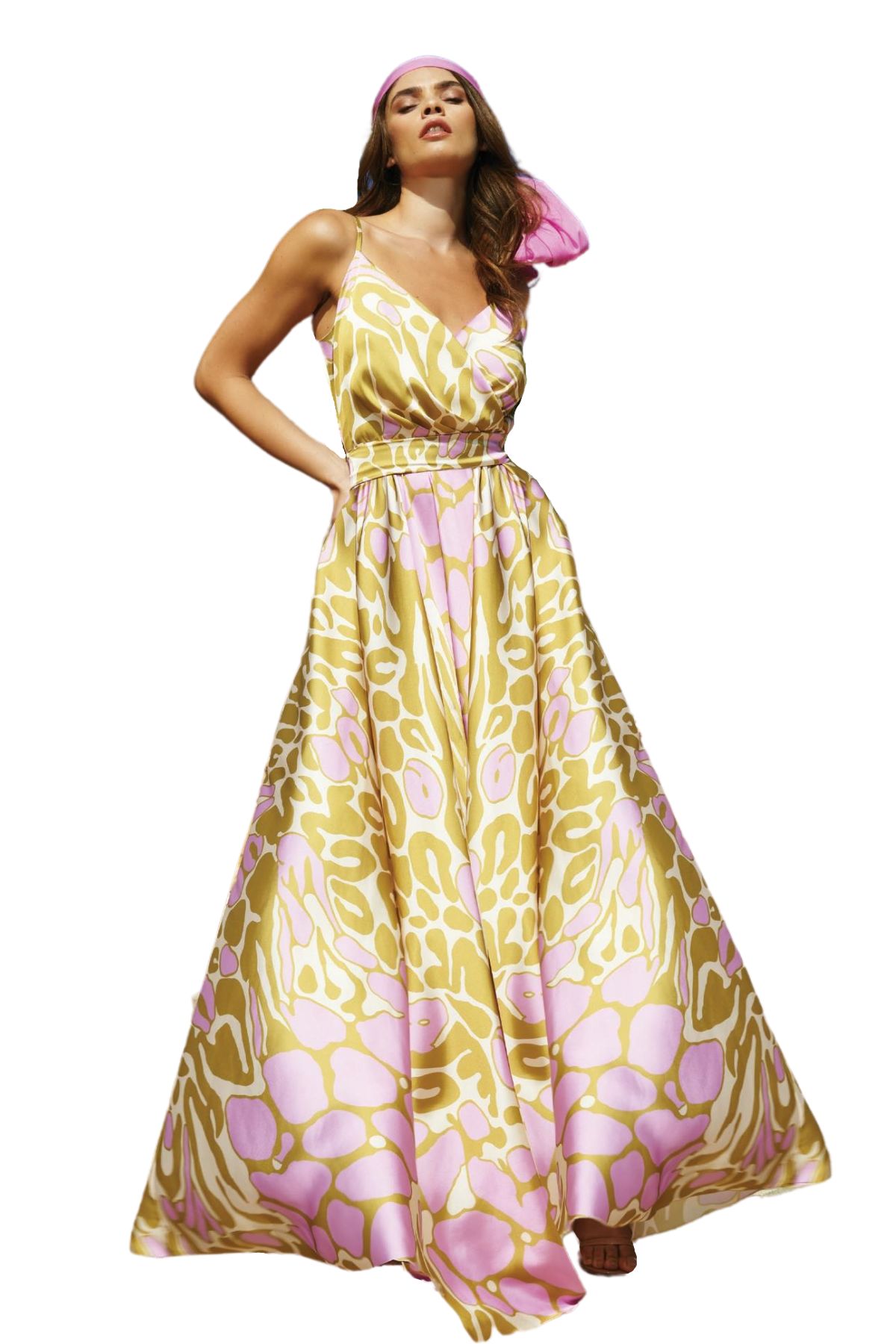 With sash to be used at the waist as a belt or around the neck as a scarf
