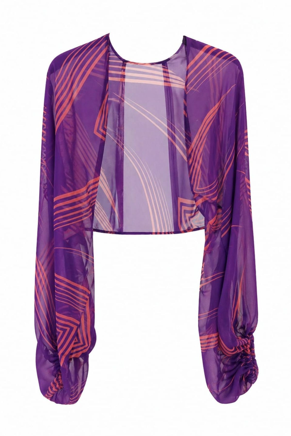 It's made of a sheer, ultra-light chiffon. The transparency of the material allows a glimpse of the top or dress underneath, creating a refined interplay of layers.