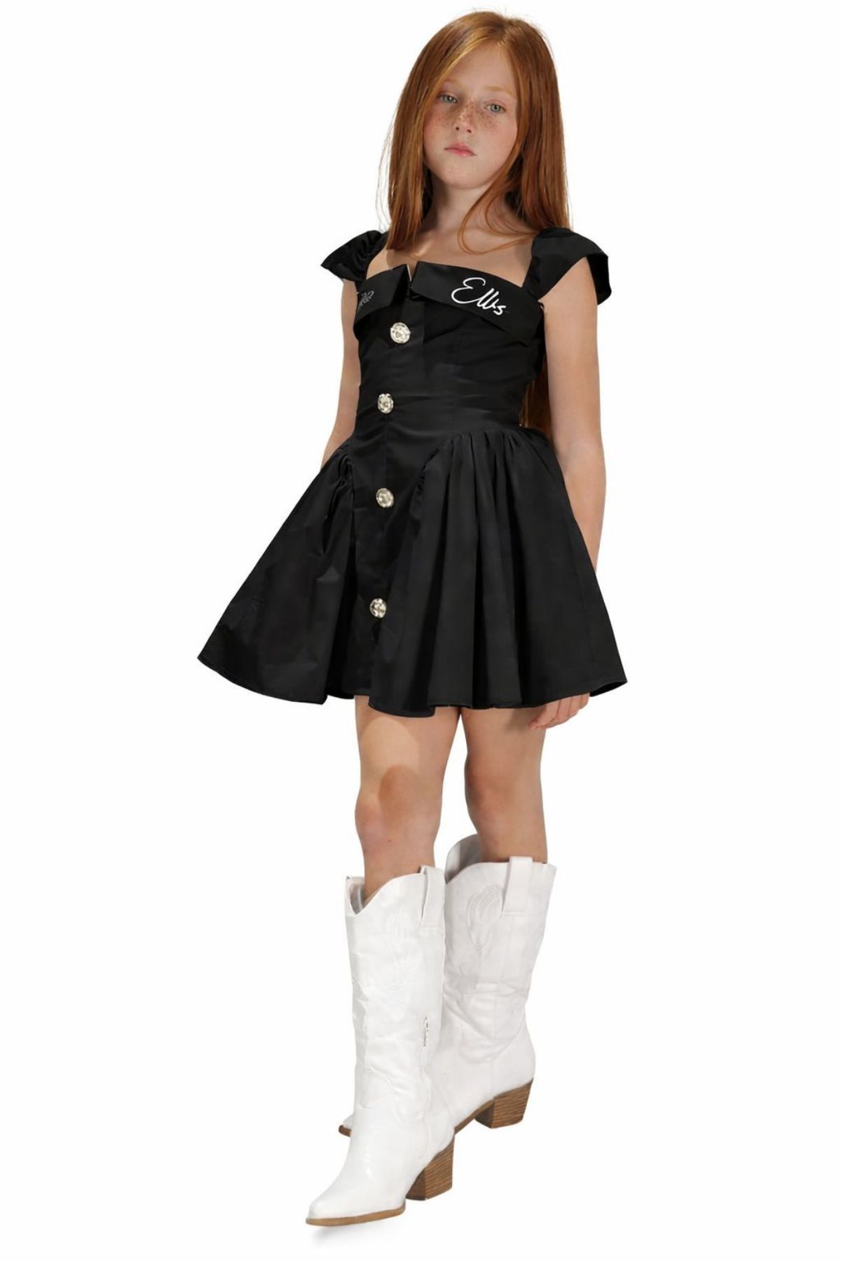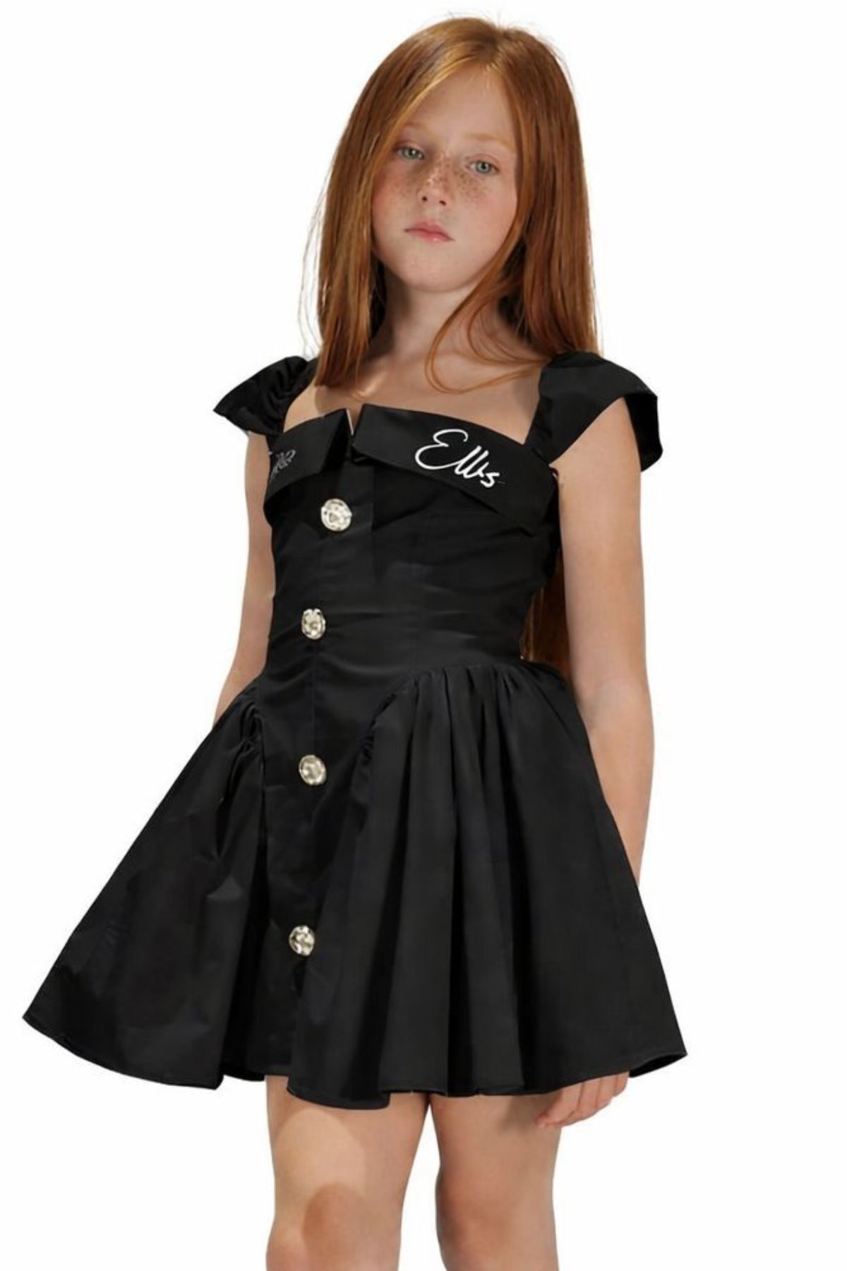The front features a closure with large, decorative buttons in the center and an embroidered "Marc Ellis" lettering on the sides of the chest.