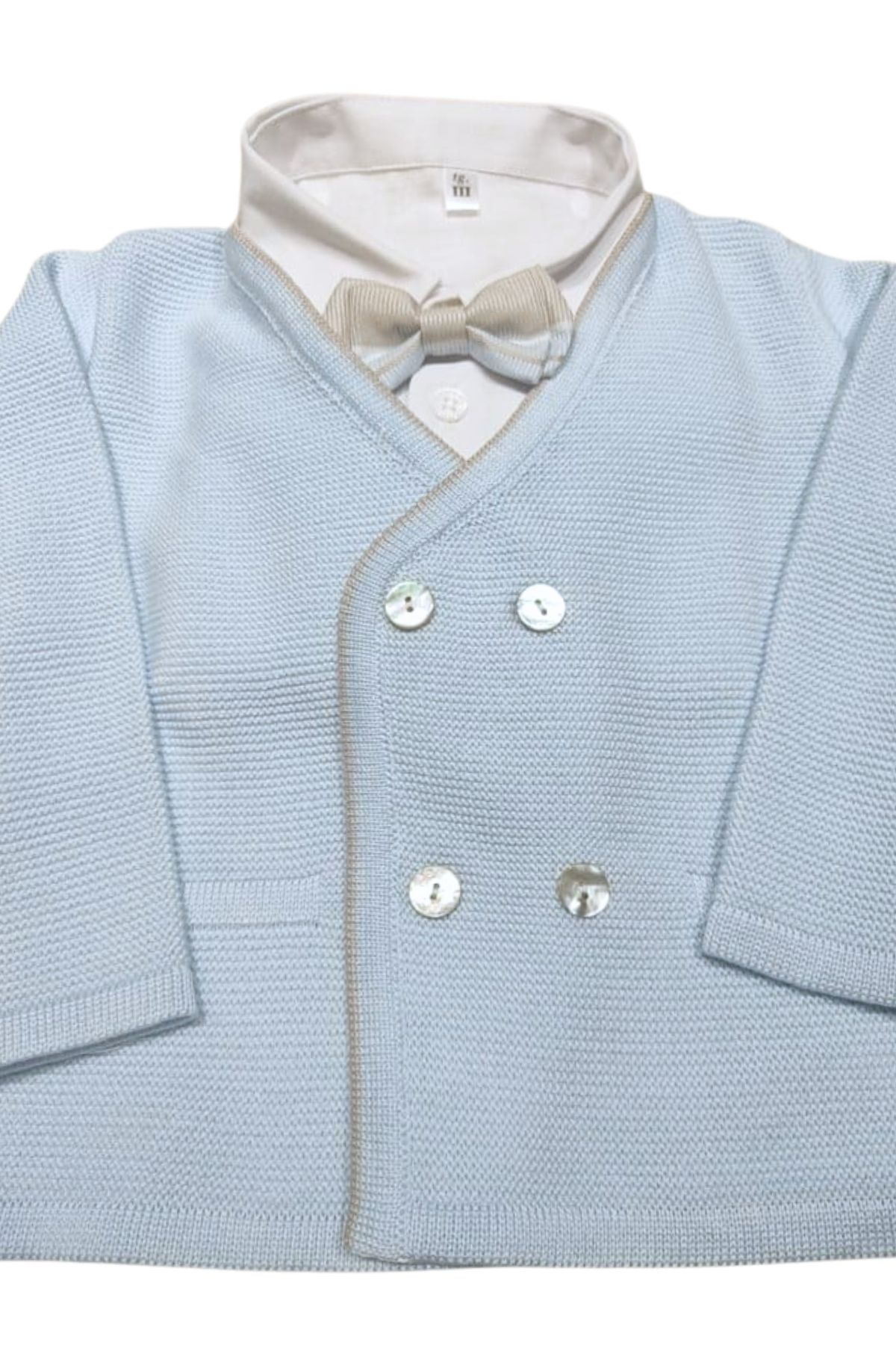 Cotton thread jacket, double-breasted, beige hem, mother-of-pearl buttons, 100% Cotton