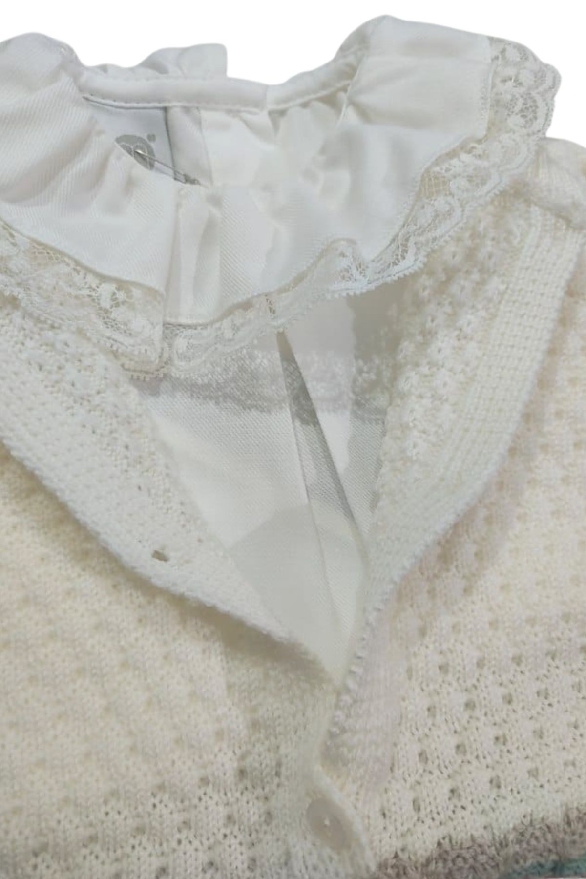 Cream cardigan in 100% wool, with texture, ribbed sleeves hem