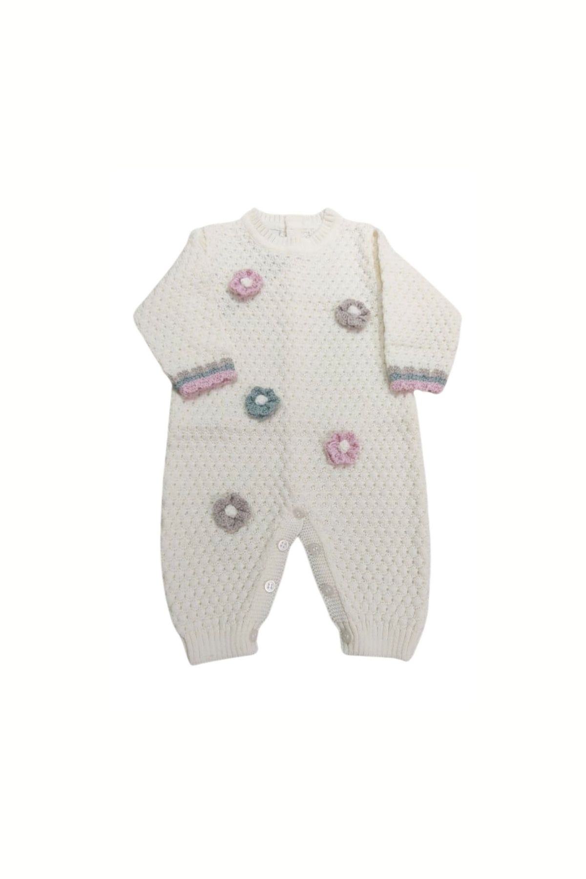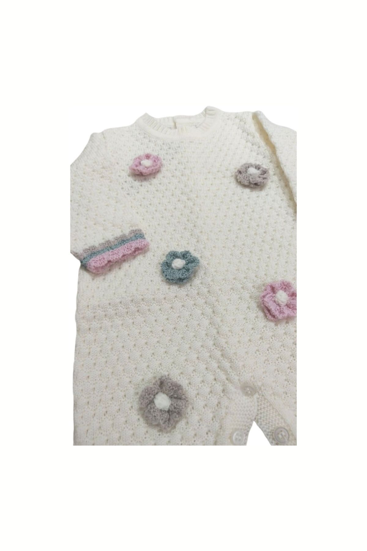 Daisy wool onesie, with texture, pastel colored flower applications
