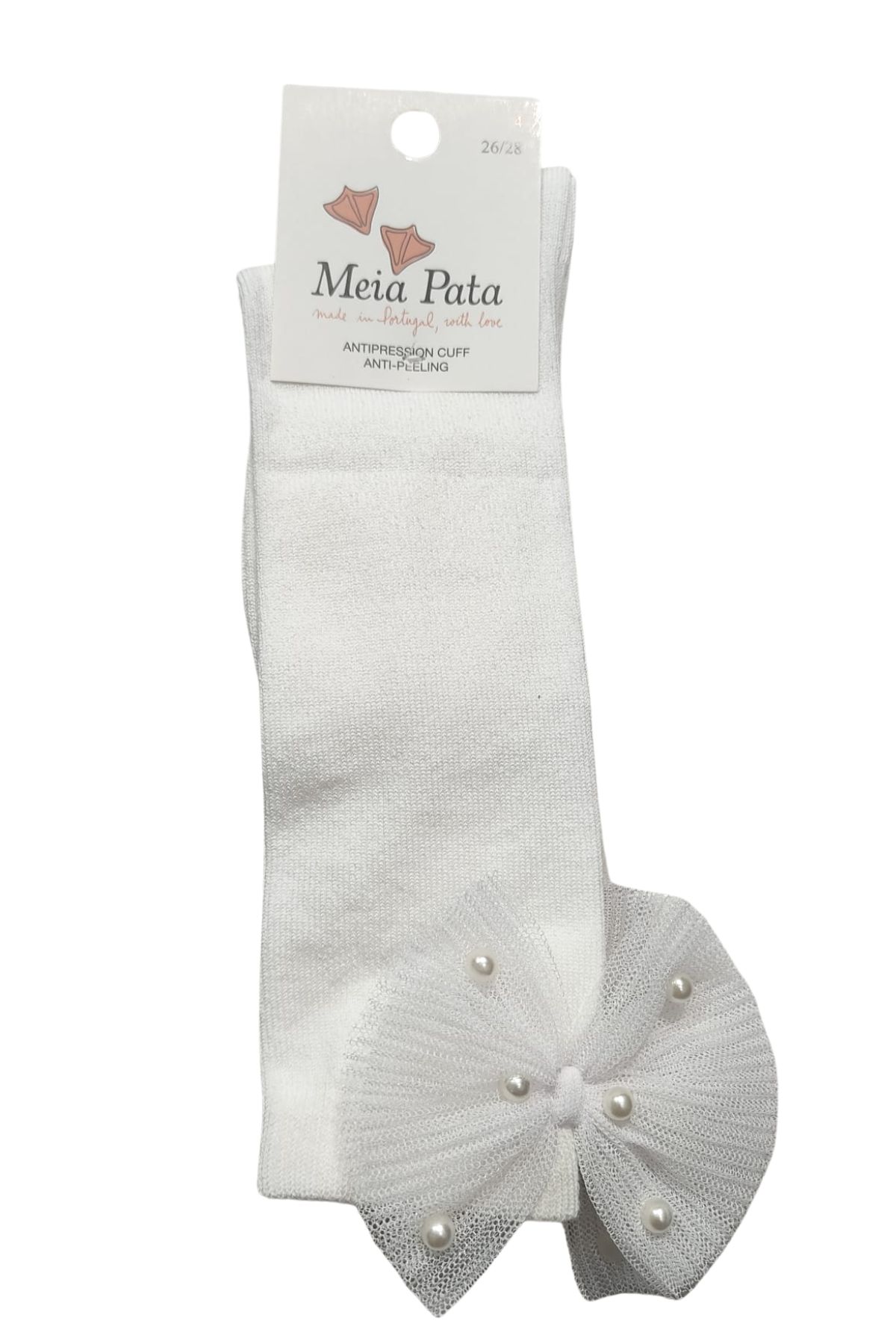 Long sock with bow in pleated tulle and pearls