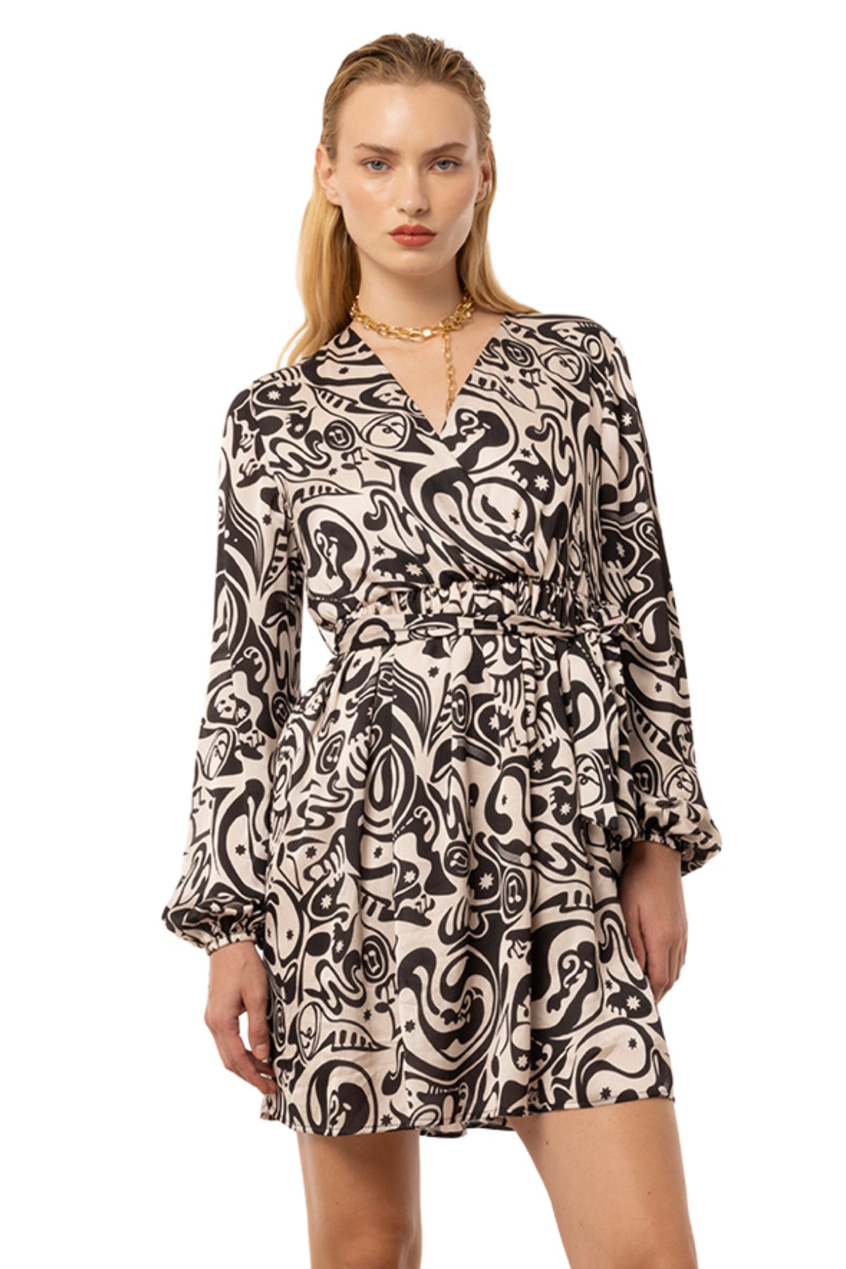 Fancy dressCrossover V-neckWith elastic waist and fabric belt Long sleeves with elastic cuffsComposition: 100%PL