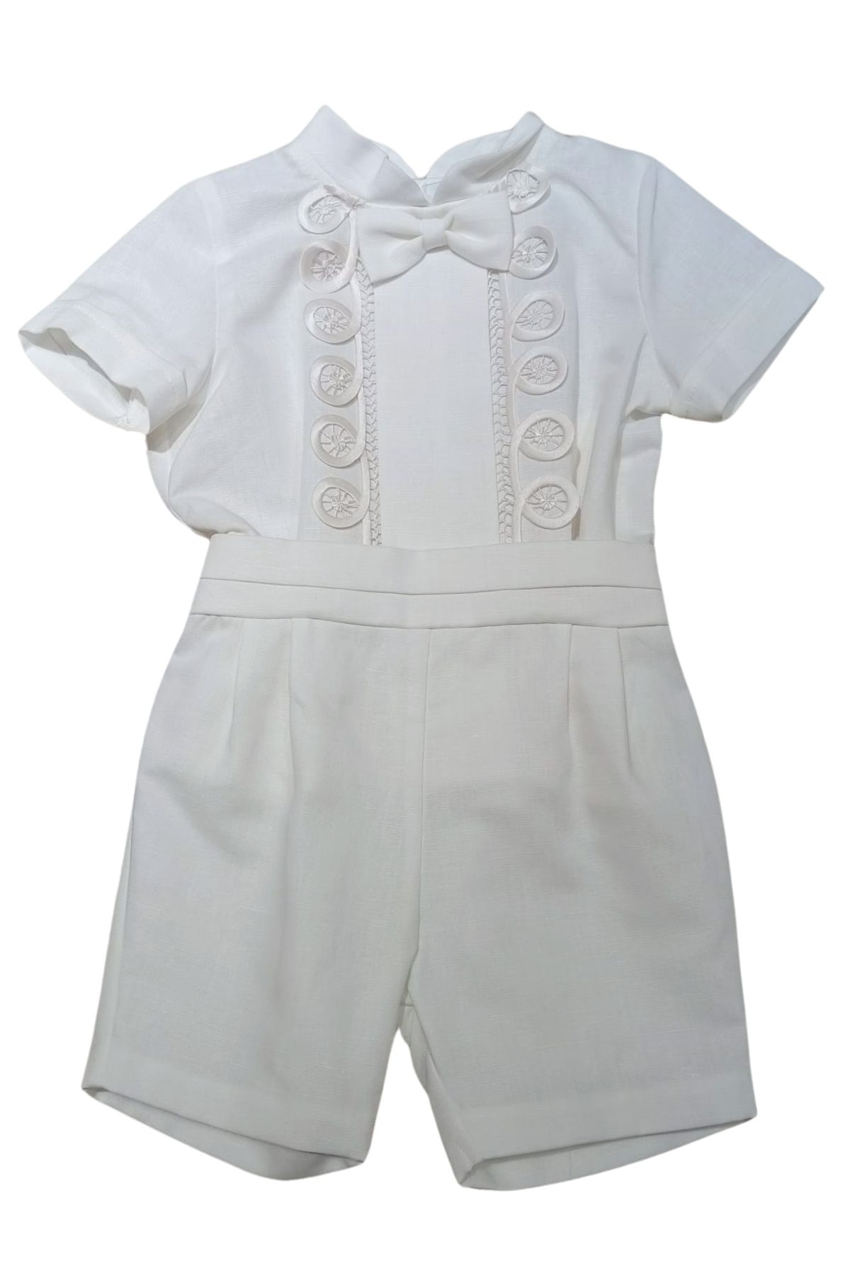 (The shirt and Bermuda shorts are tied inside with buttons to recreate a super chic romper)