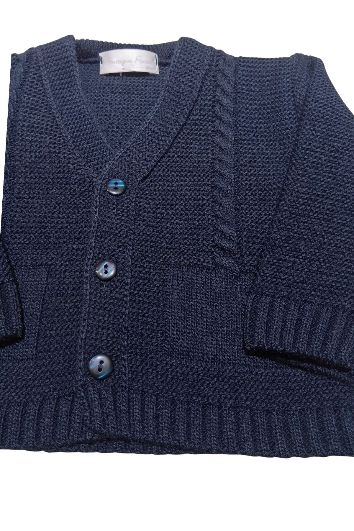 Black wool cardigan with yellow and white patterned details ICEBERG