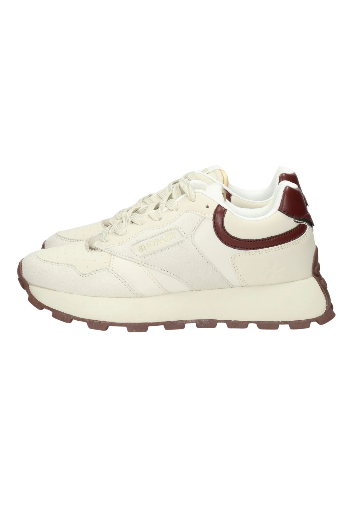The sneaker is made of faux leather and faux suede with contrasting details.