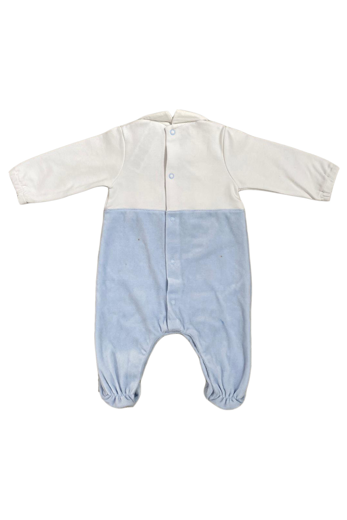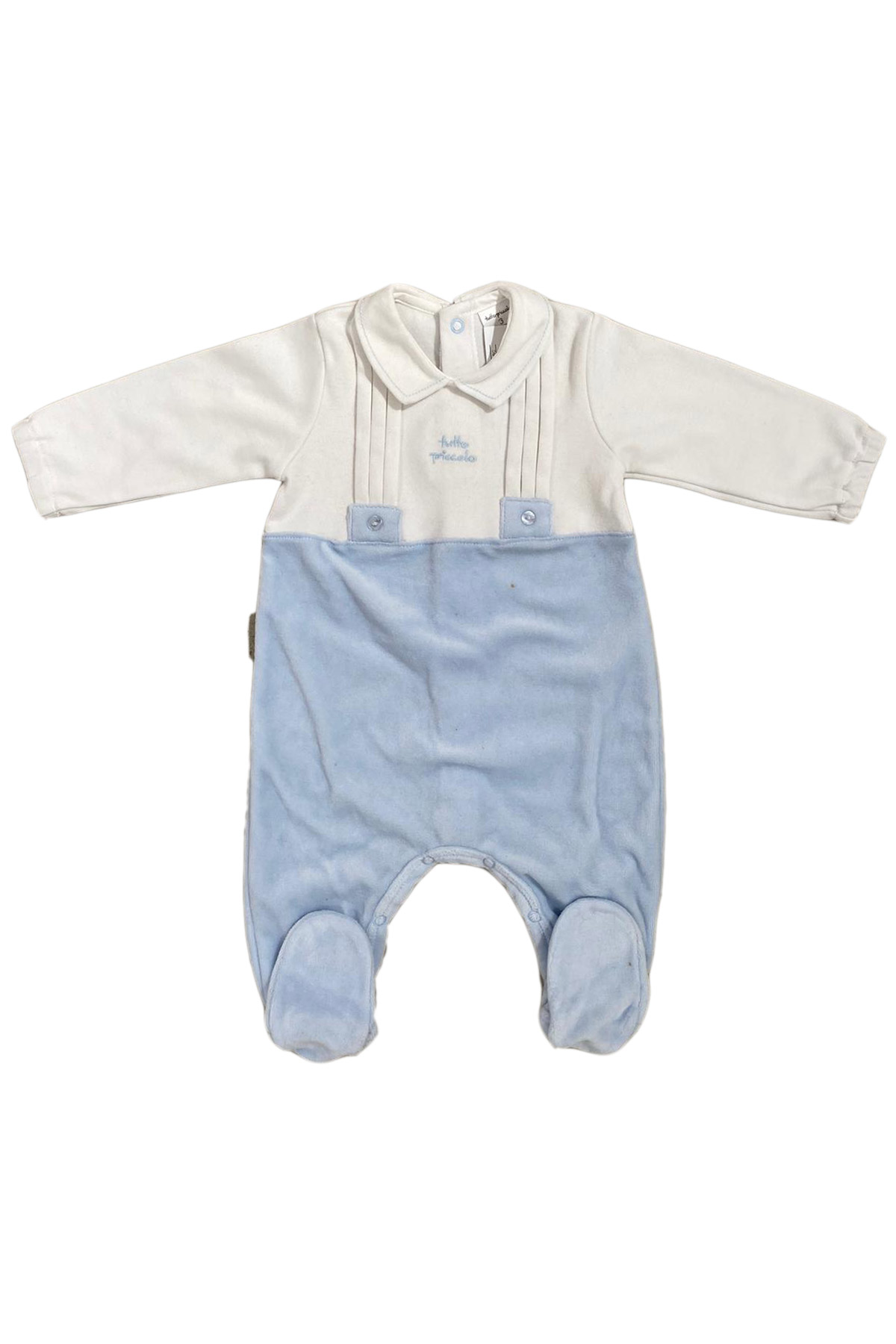 TUTTO PICCOLO, White and light blue onesie in chenille and cotton baby boy birth