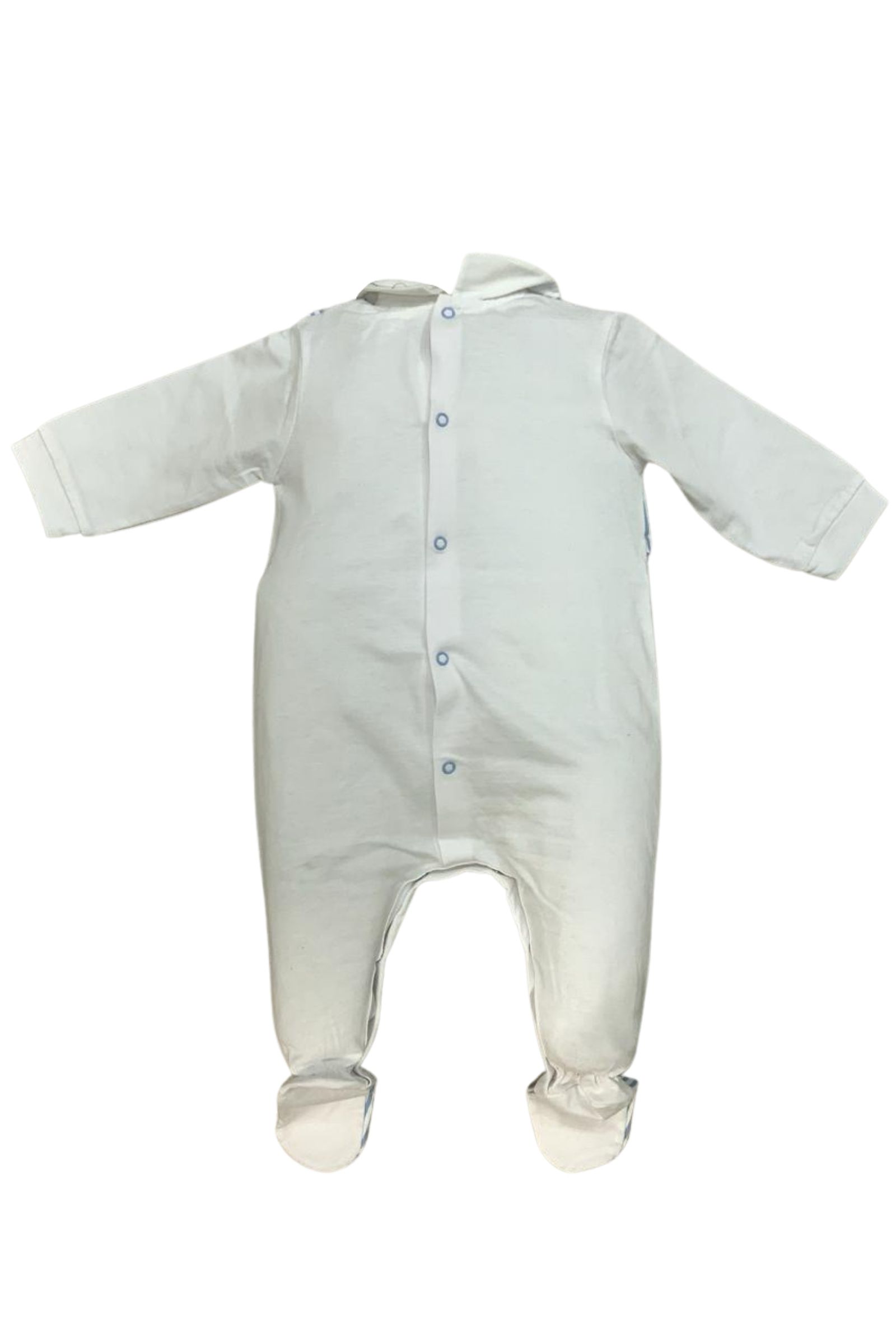 Long sleeve and legWith collarFaux waistcoat striped with blueStripe detail on the feetLogo embroidery on the left side100% cotton