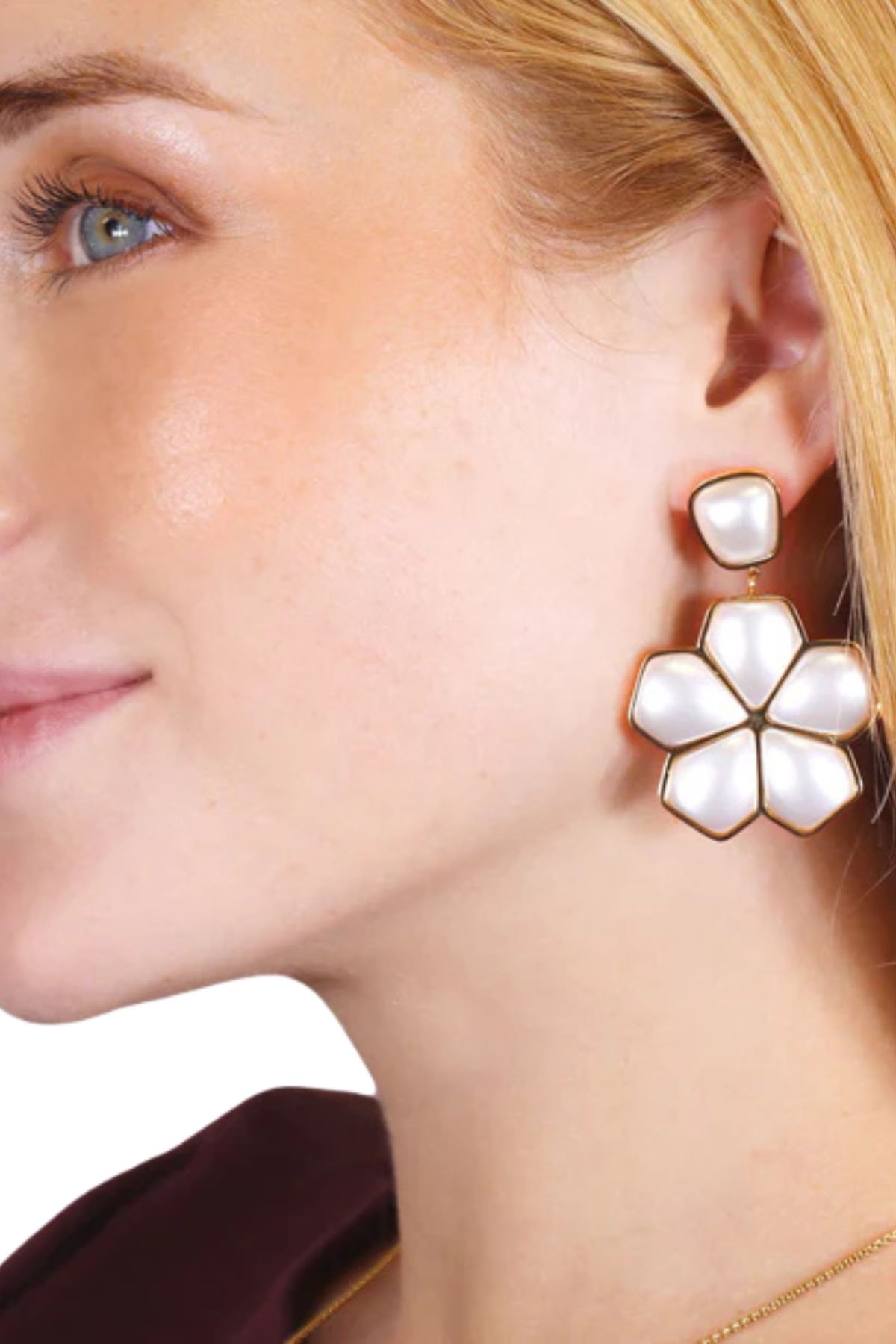 Gli orecchini Whim Gleia combinano una dimensione generosa con un disegno floreale geometrico ispirato alla natura. Realizzati in acciaio chirurgico placcato oro e decorati con perle, offrono una lucentezza sofisticata che illumina la pelle. Ipoallergenici e resistenti all'acqua, sono perfetti per feste e occasioni speciali. La loro chiusura a respinta garantisce comfort e sicurezza. In linea con la tendenza Anartxy, questi orecchini sono la scelta ideale per distinguersi con eleganza e tocco chic.