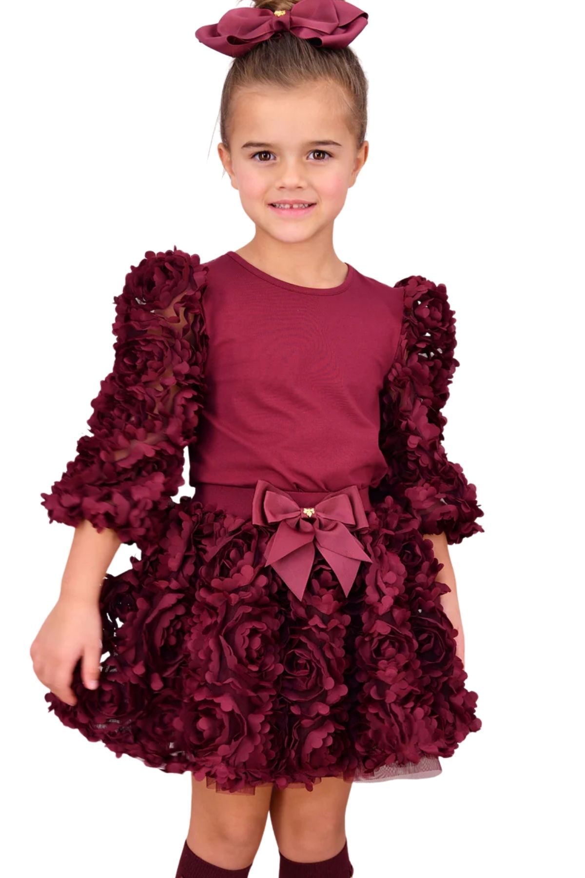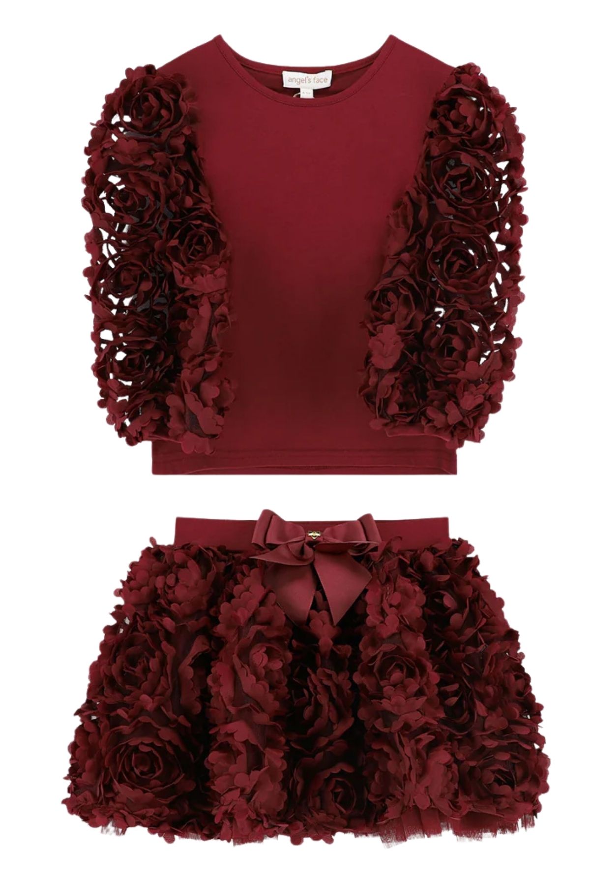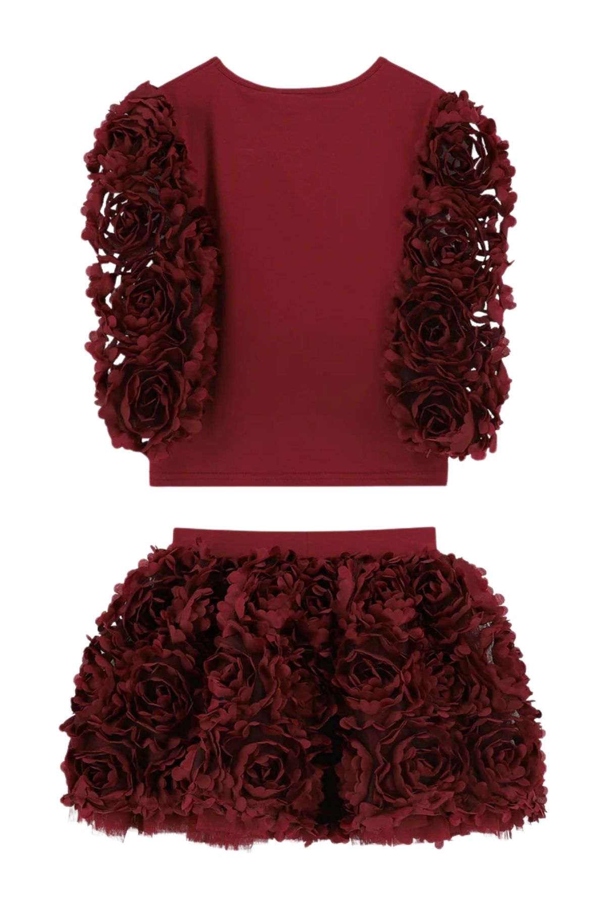 Completo top e gonna in tulle 3D Khaila Bordeaux