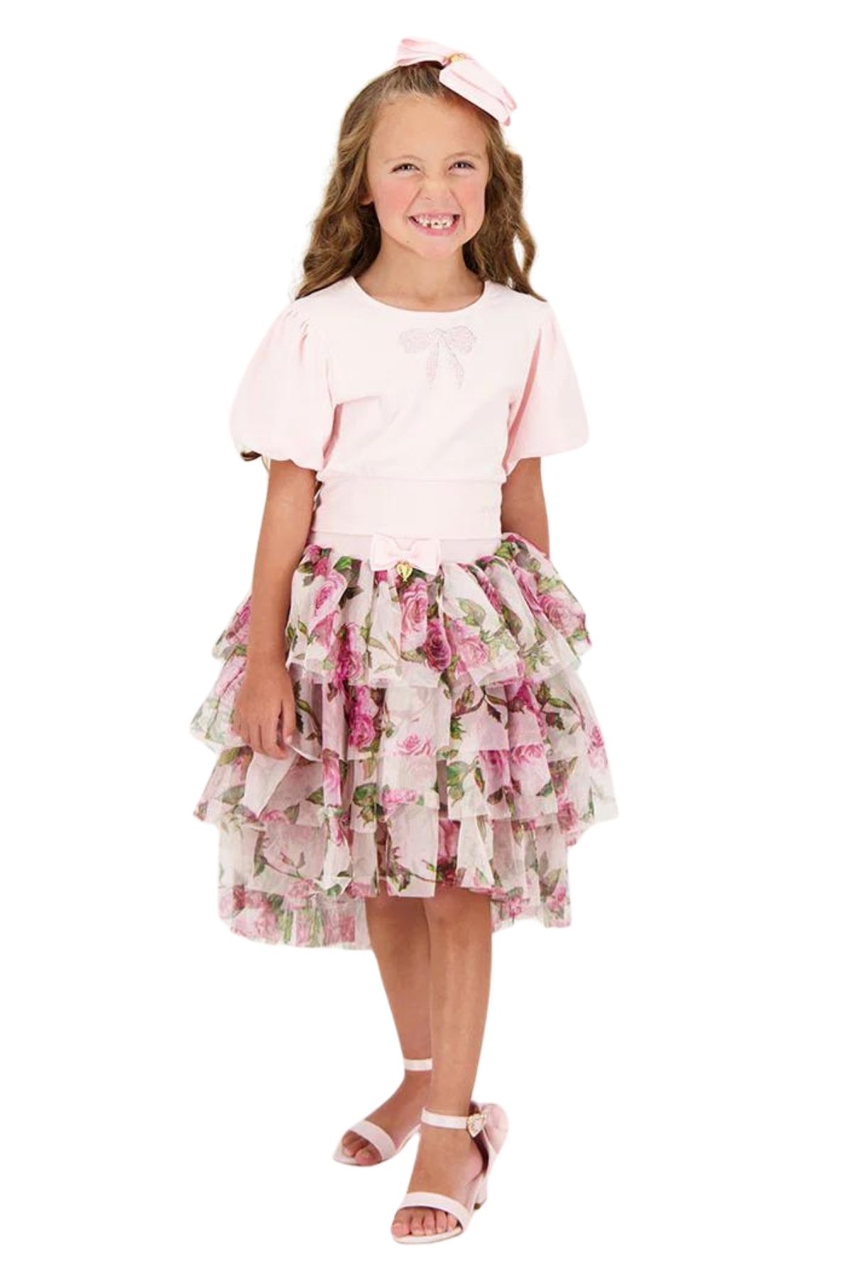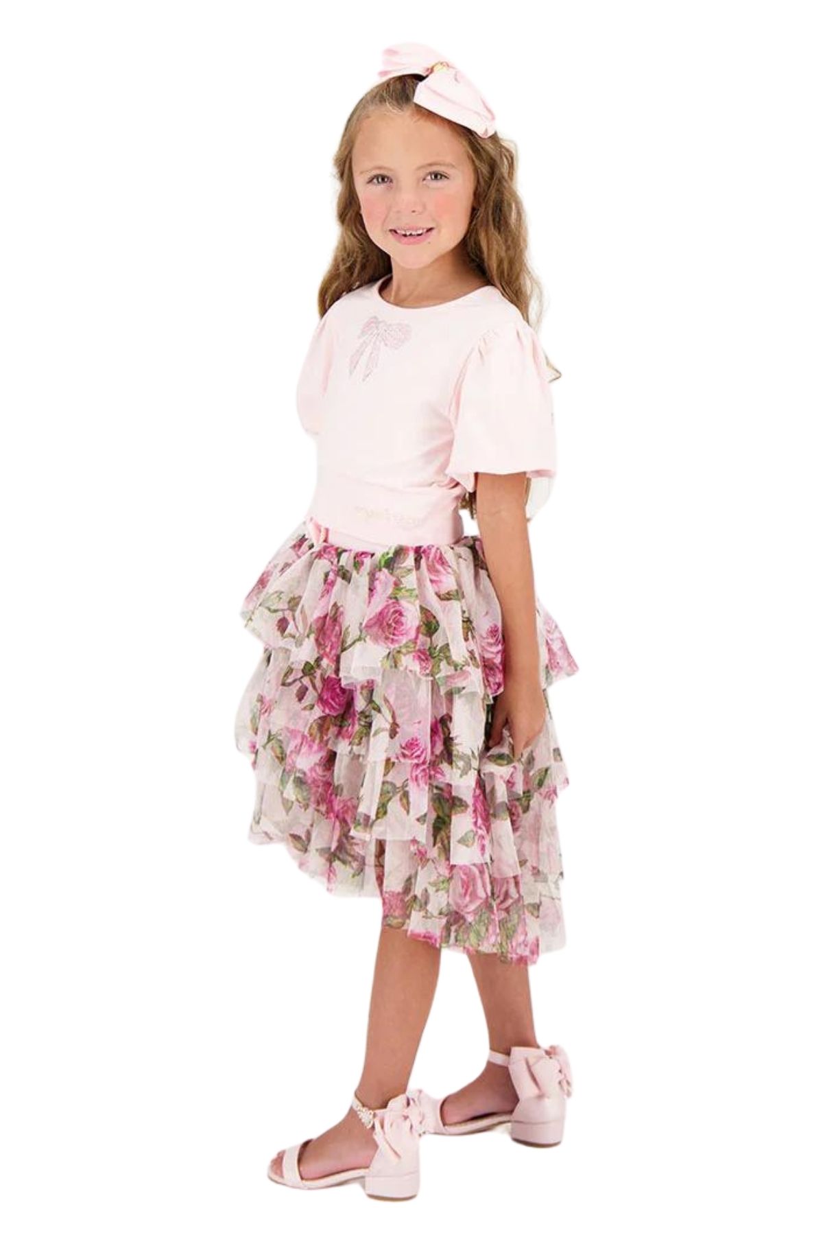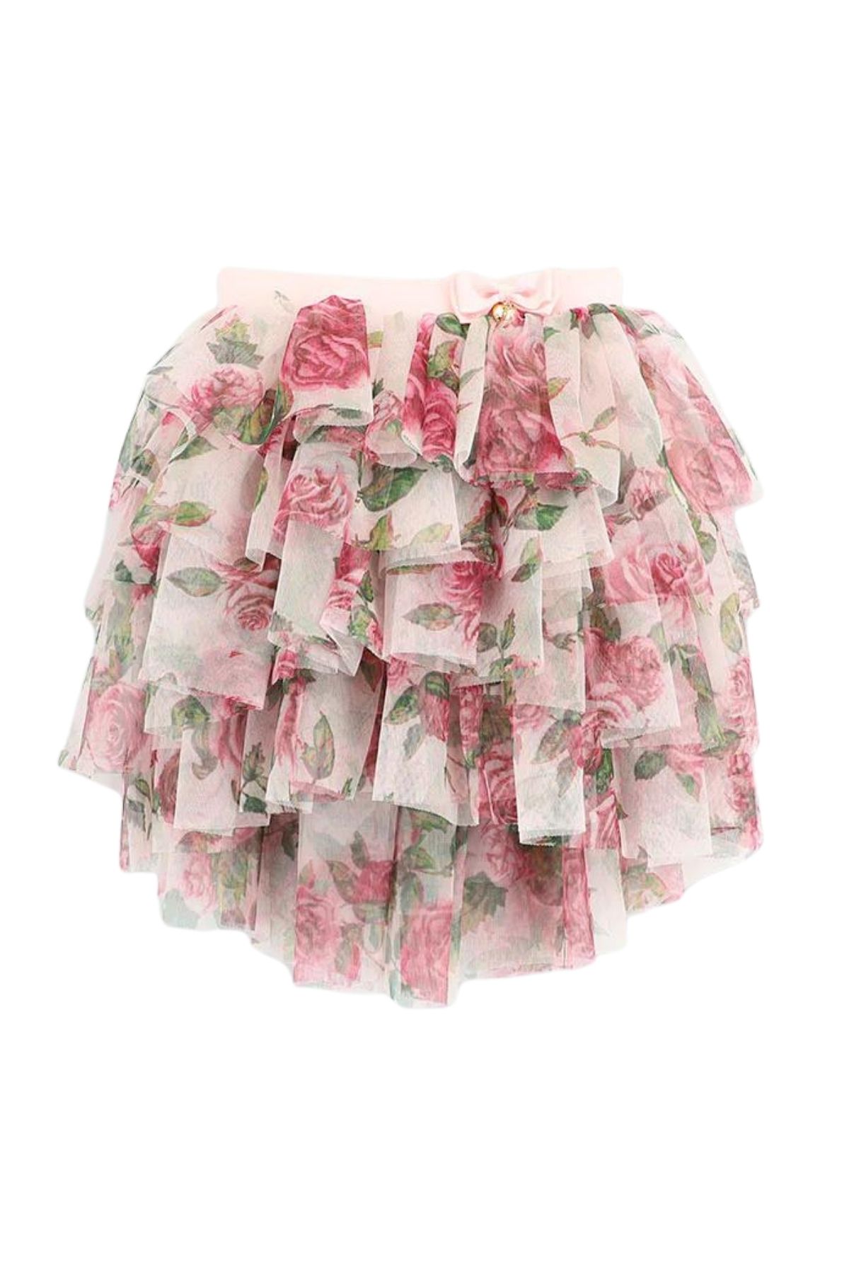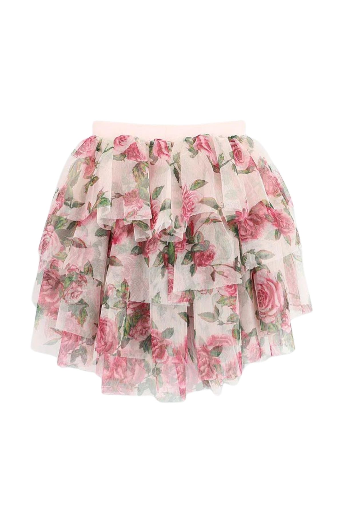 Morbidissima gonna in tulle voluminoso con un disegno a fiori rosa