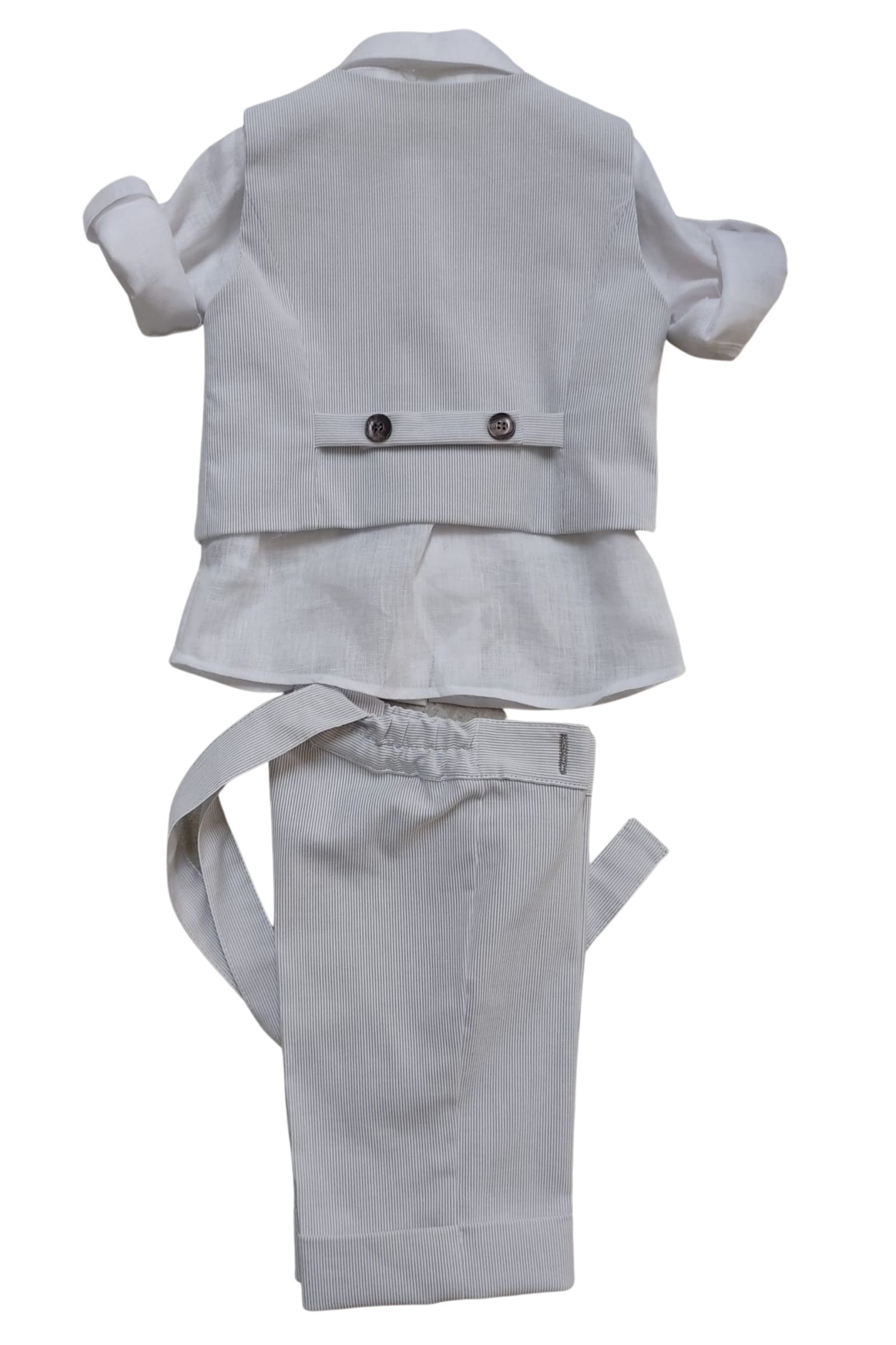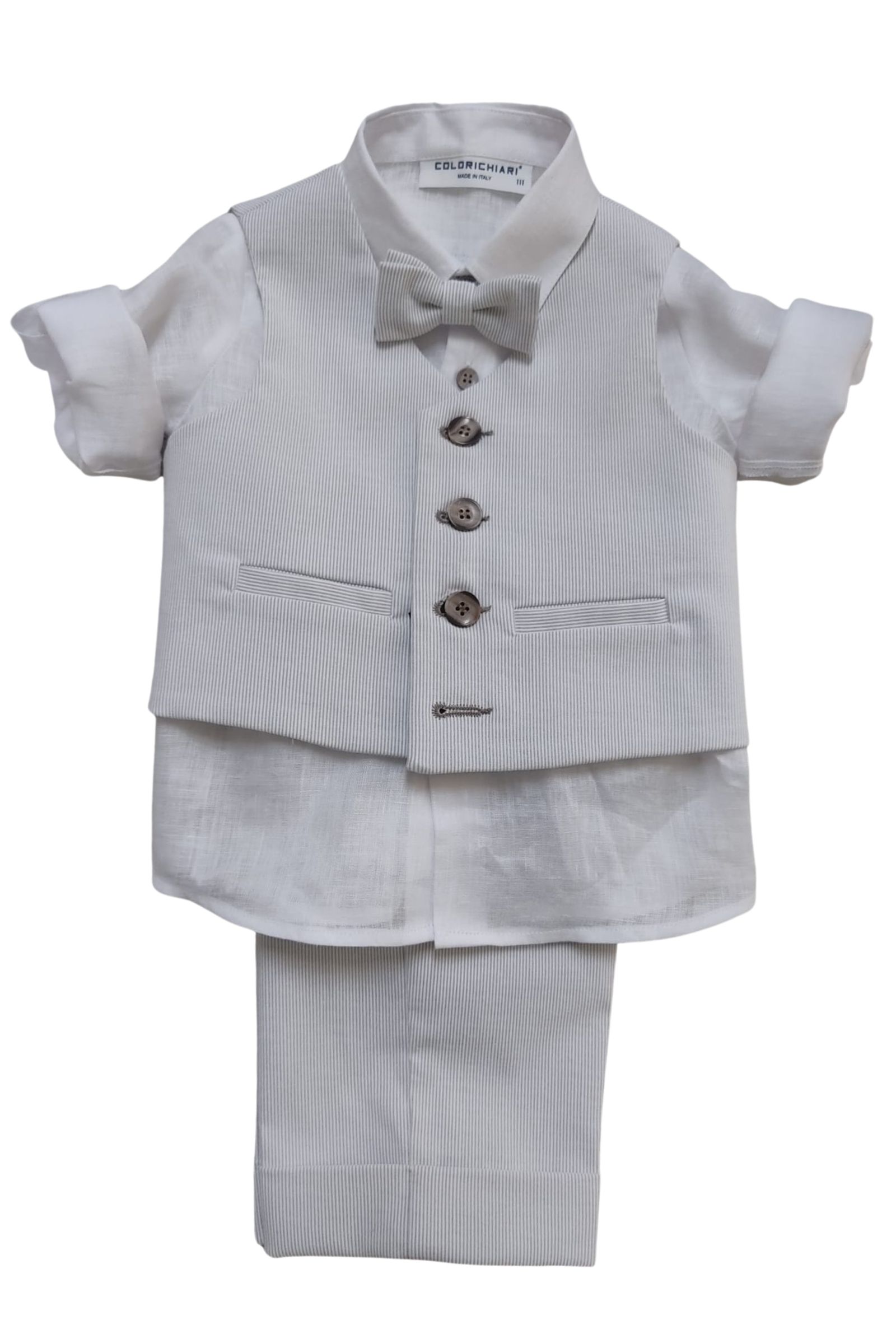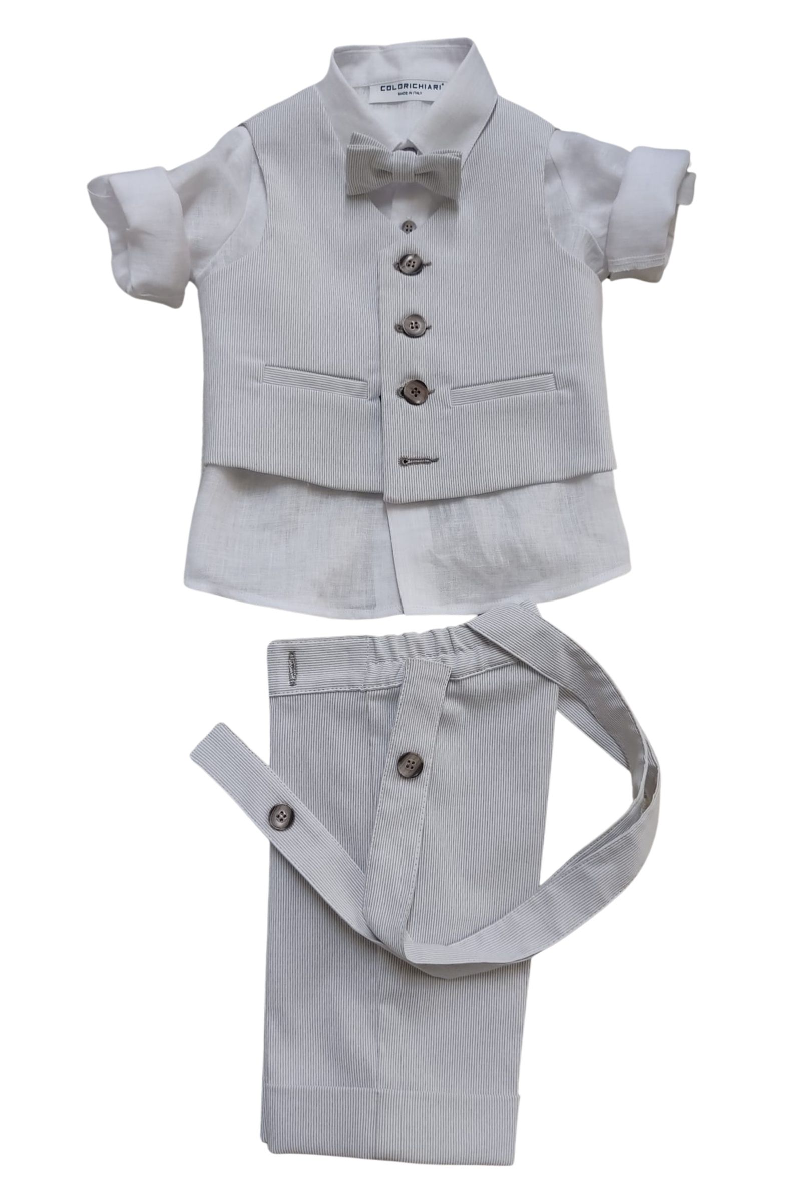 Pantaloni in cotone all'inglesina (modello alla caviglia); con bretelle e regolabili in vita con bottoncino