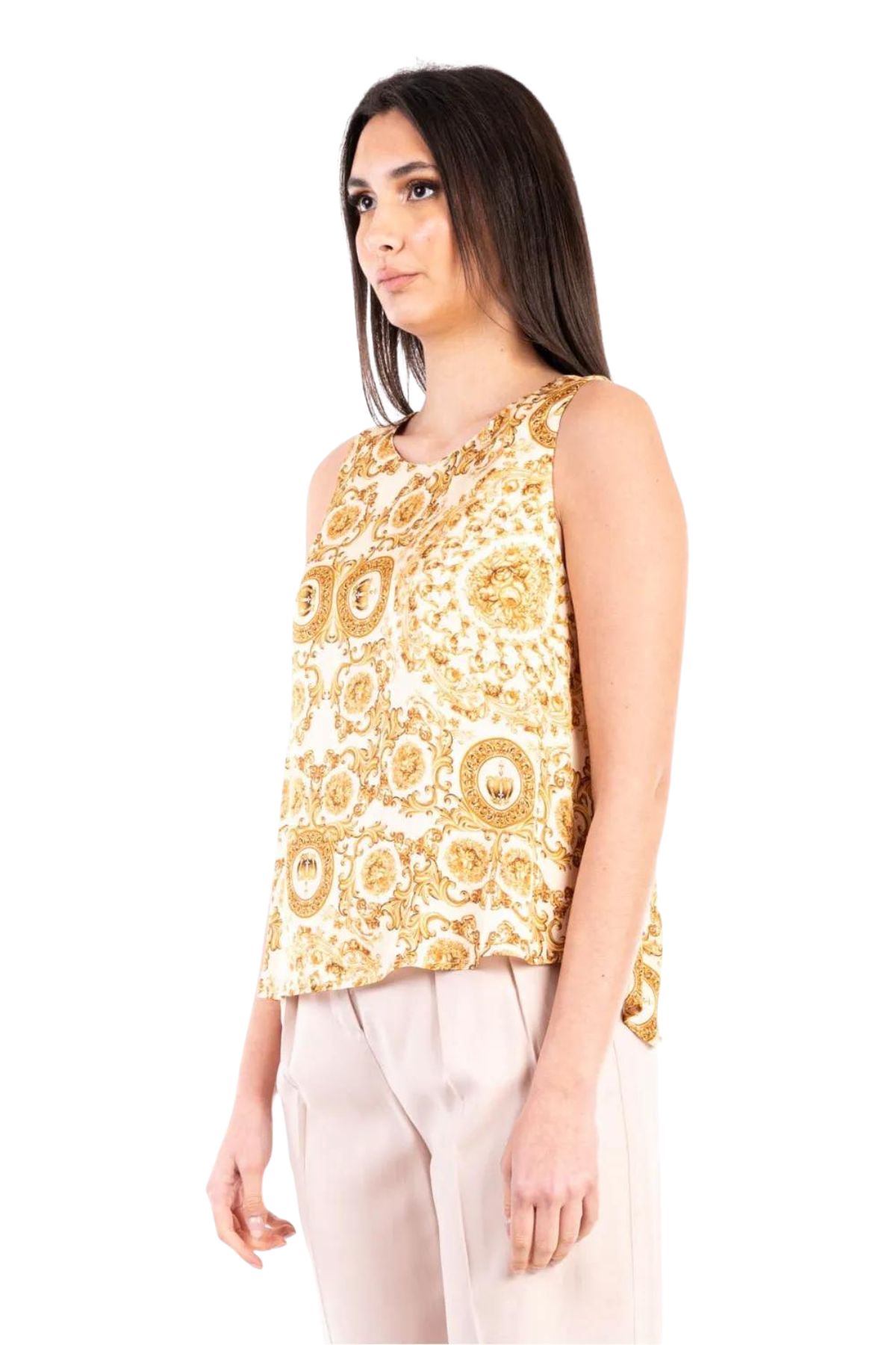 Blusa fantasia CLARAGirocollo e giromanicaLunghezza normaleFantasia all-overComposizione: 97% Poliestere, 3% Elastan.
