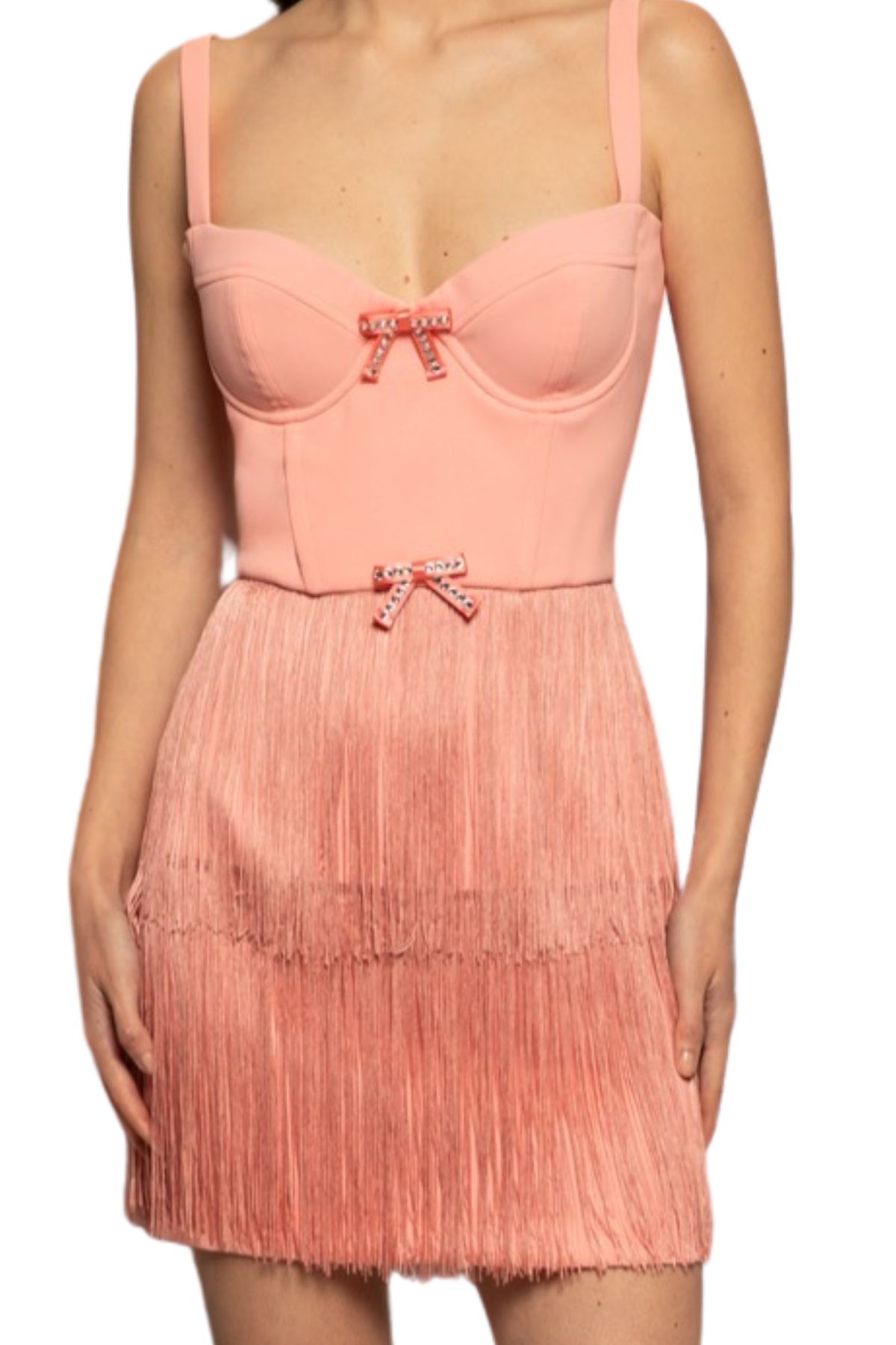 Bustier con coppe a cuore, dettaglio fiocco gioiello al centro del seno