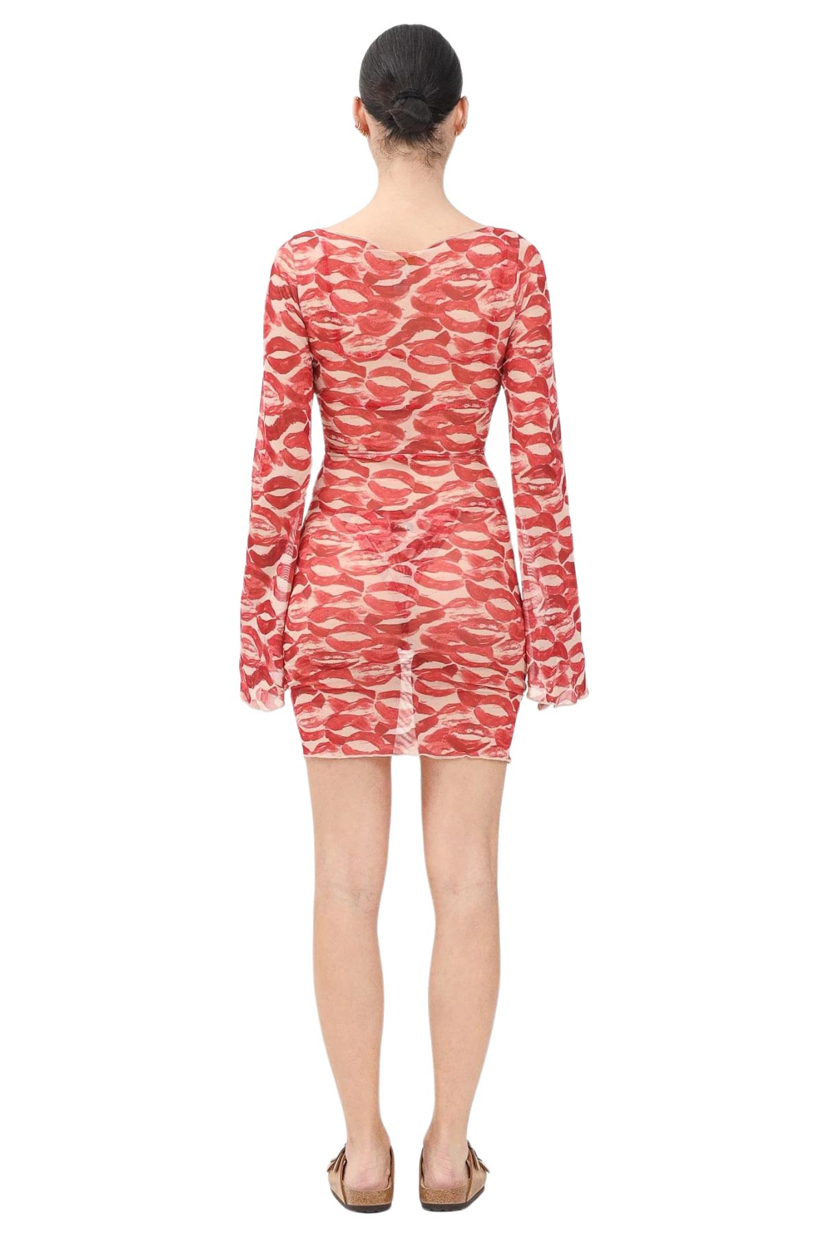 Il design è caratterizzato da un top con scollo profondo e maniche lunghe aderenti
