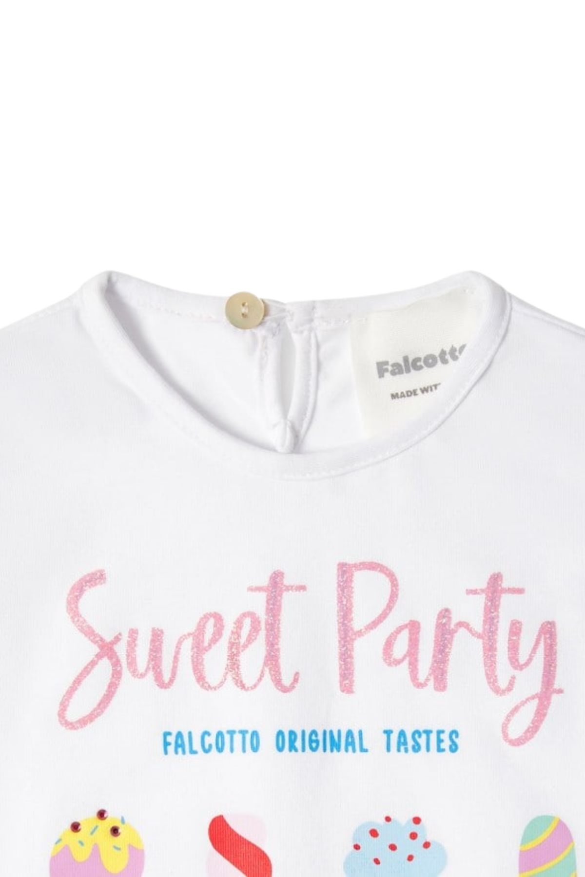 T-Shirt stampa gelati glitter VERAH ICECon stampa con gelati e scritta glitterataVestibilità regolare e allacciatura con bottone sul dietro