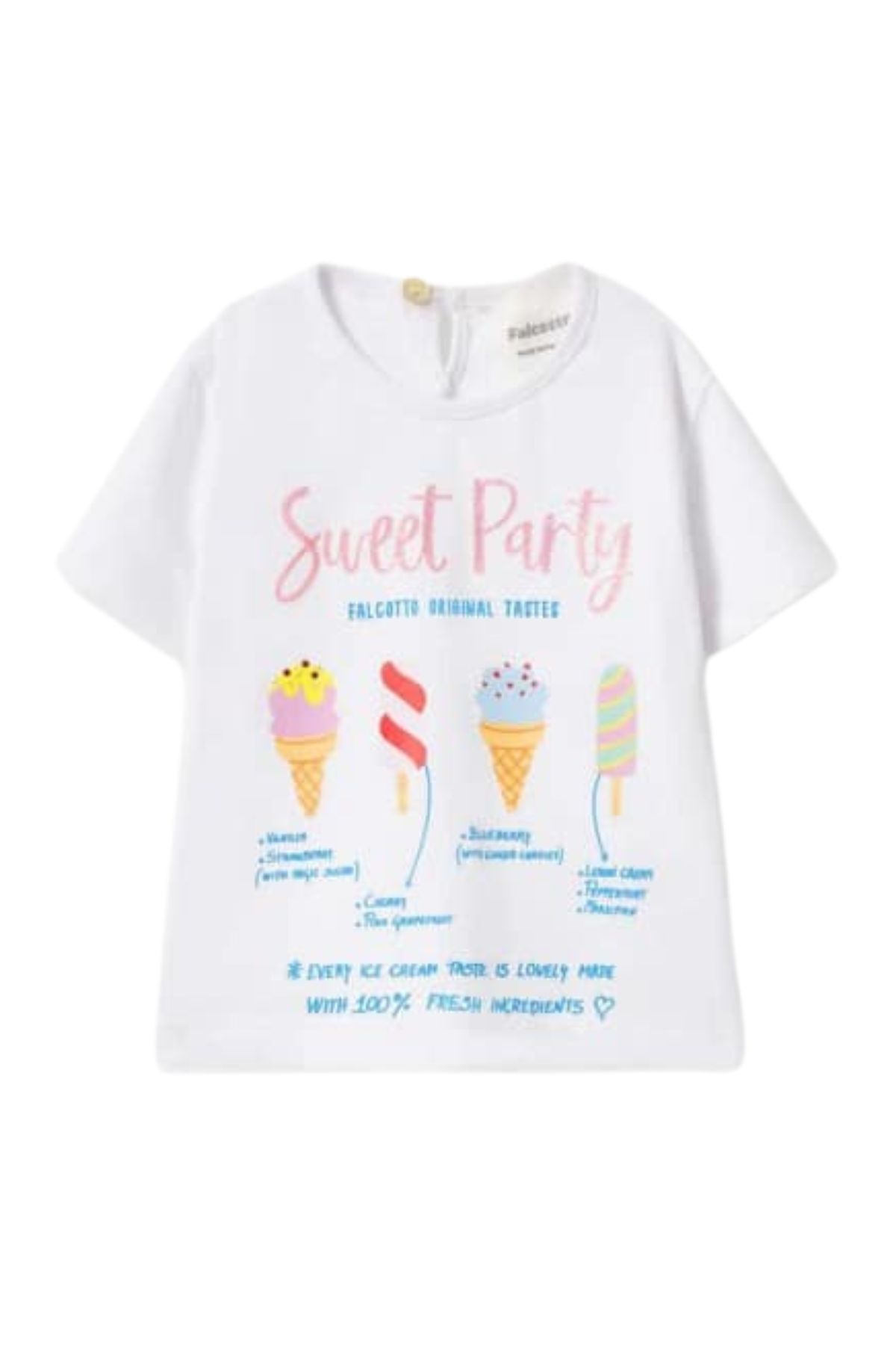 T-Shirt stampa gelati glitter VERAH ICECon stampa con gelati e scritta glitterataVestibilità regolare e allacciatura con bottone sul dietro