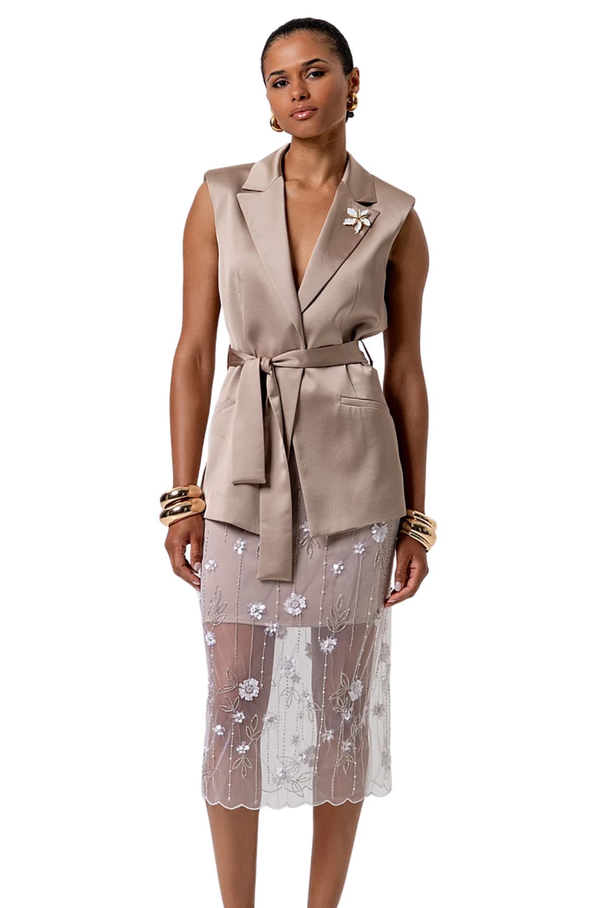 Blazer senza maniche in raso
