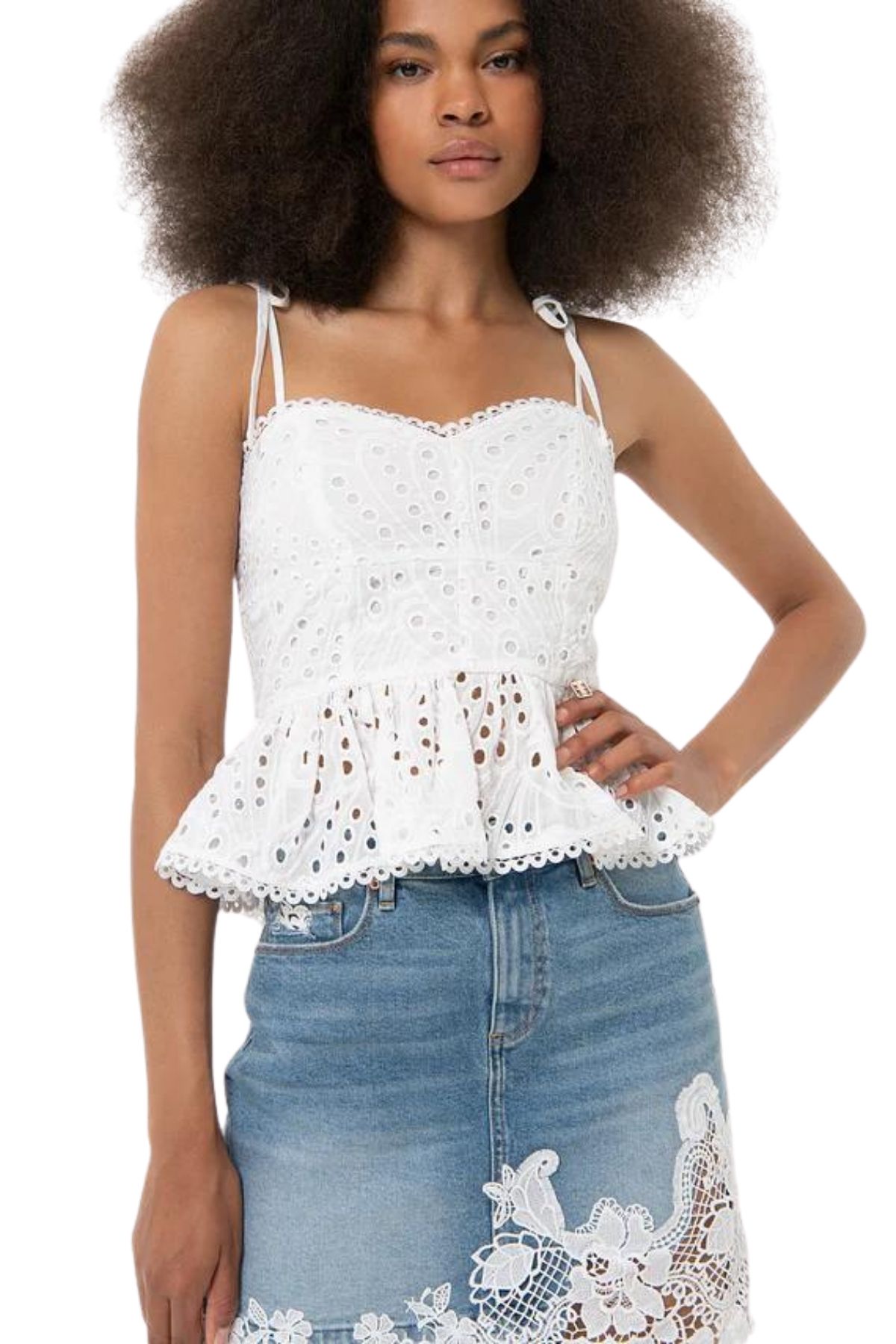 Top senza maniche in pizzo San Gallo
