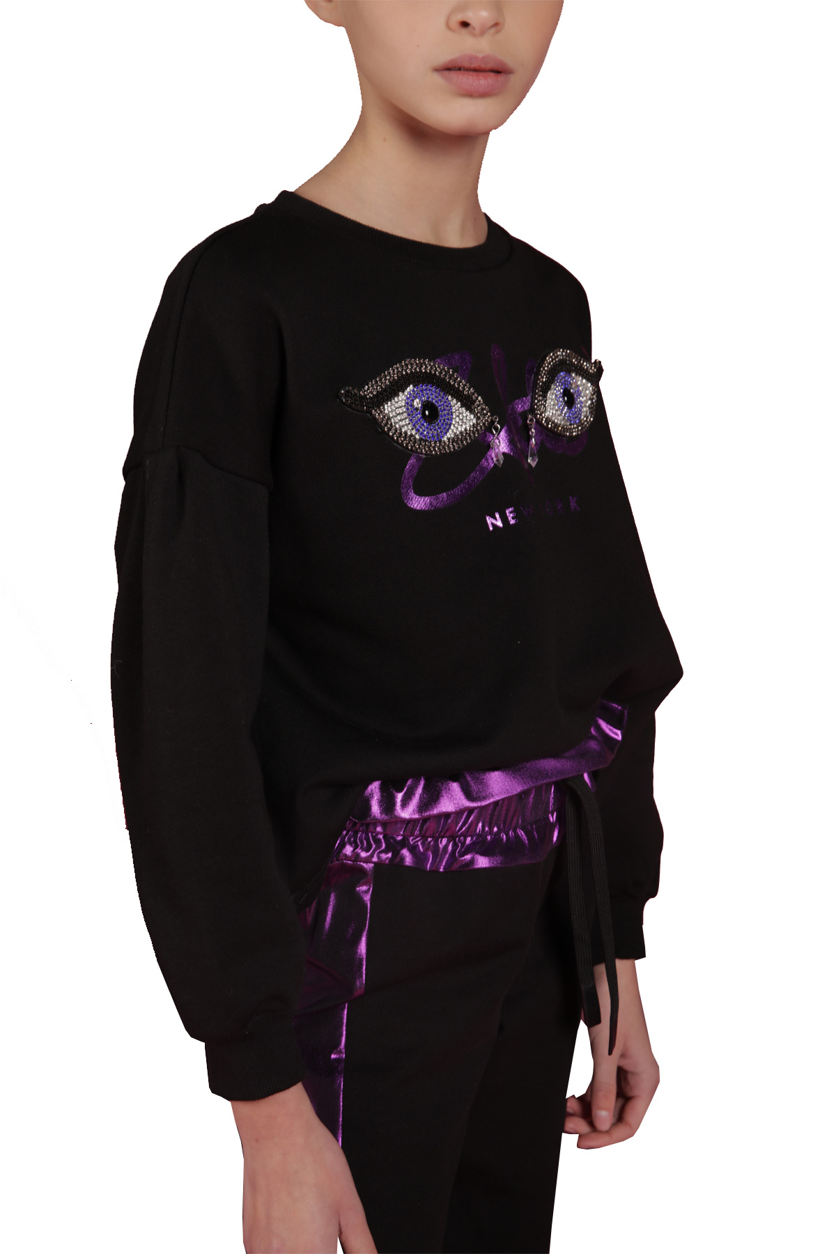 FUN FUN, Felpa nera Elite New York Eyes ragazza bambina