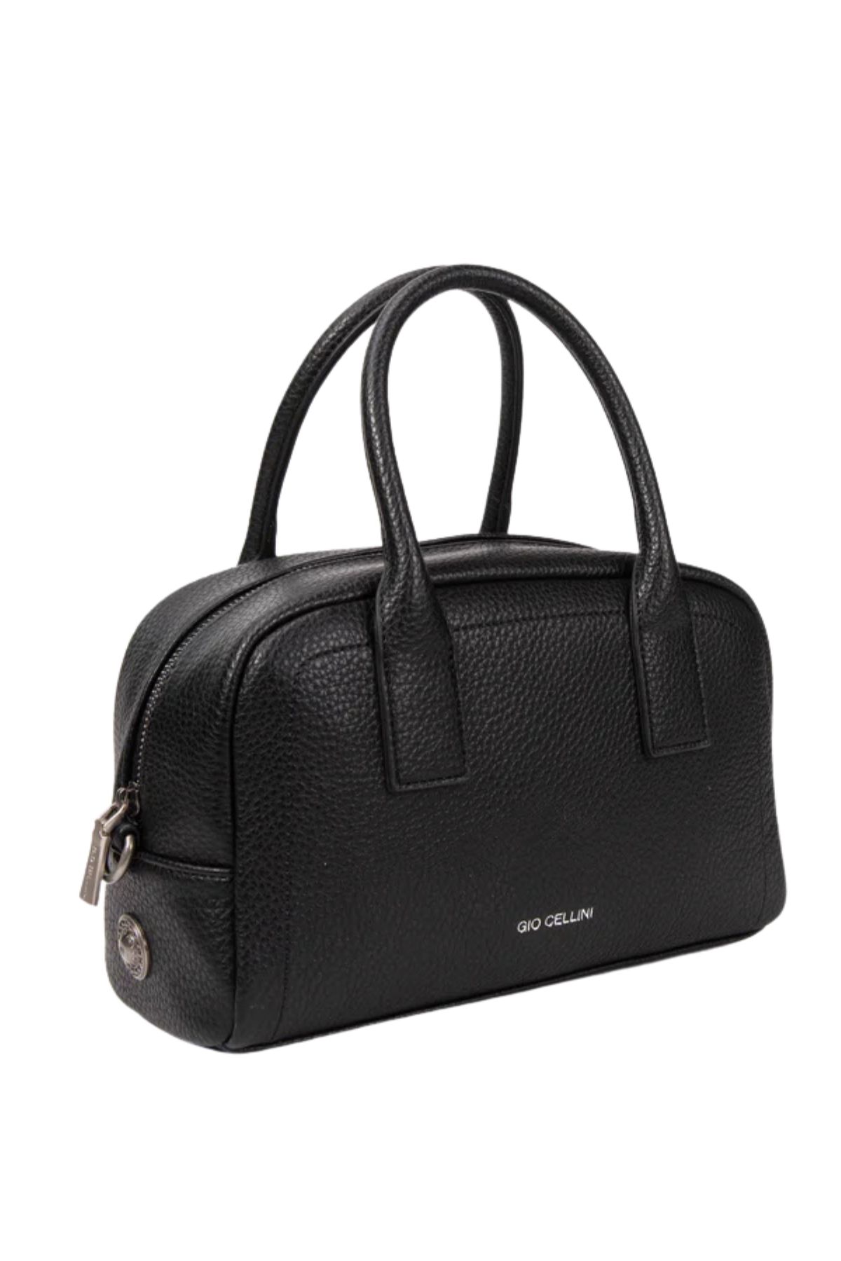 Borsa a mano in ecopelle martellata con logo embossed finitura argentata