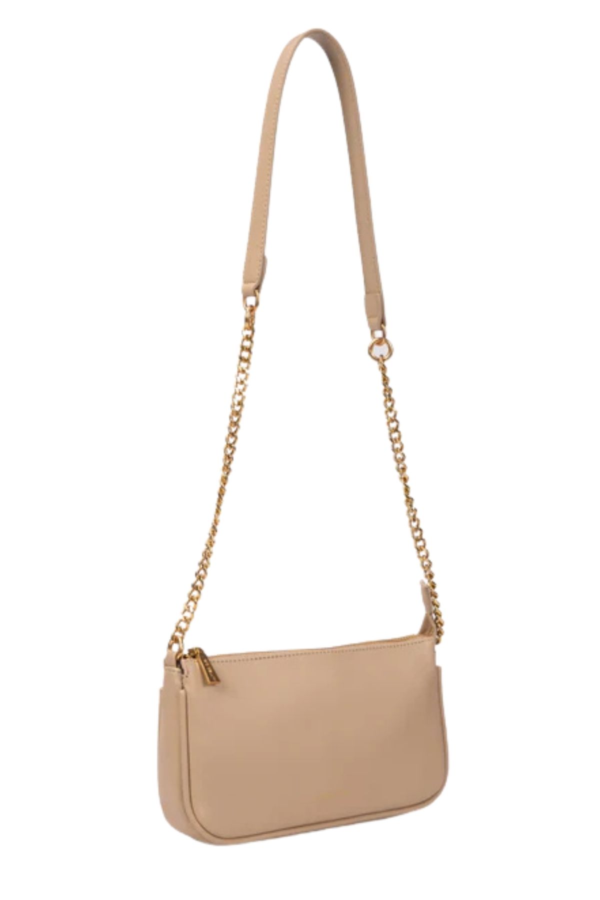 Pochette in ecopelle liscia con logo embossed finitura dorata
