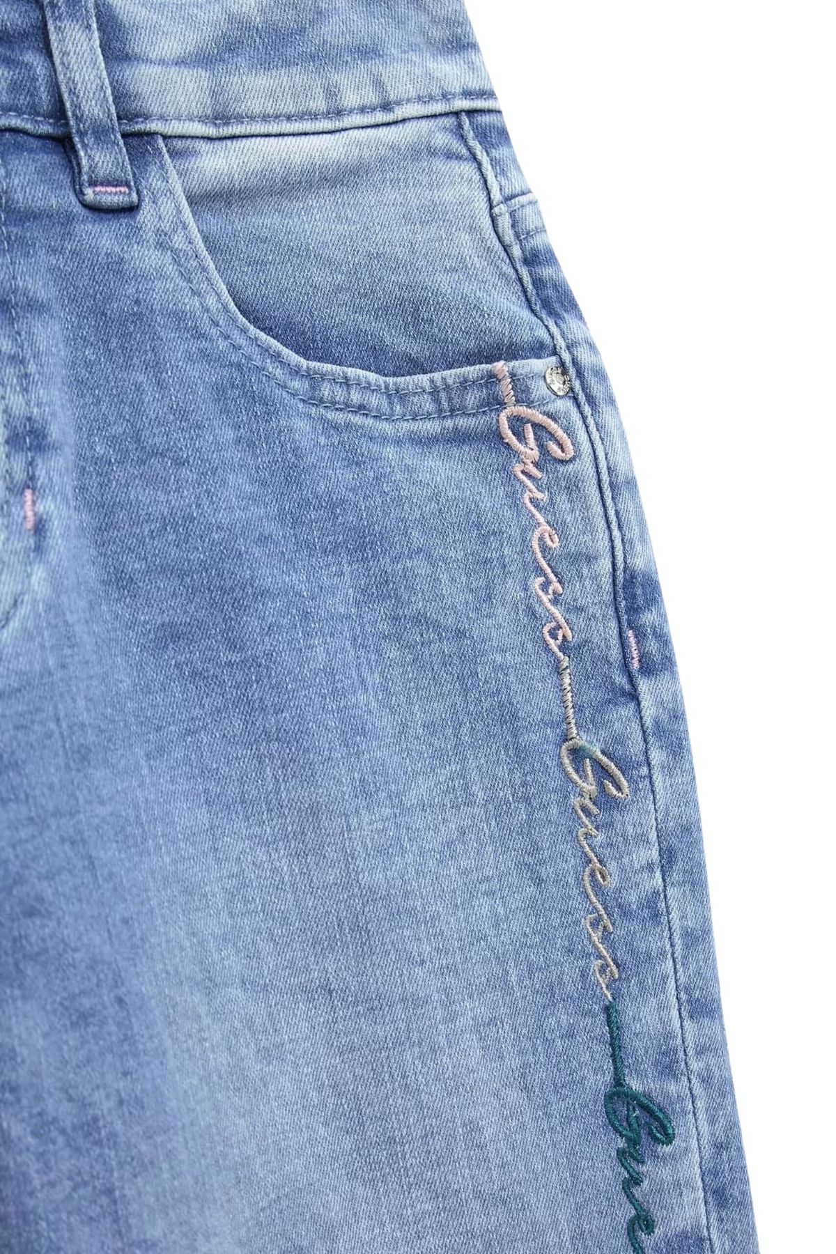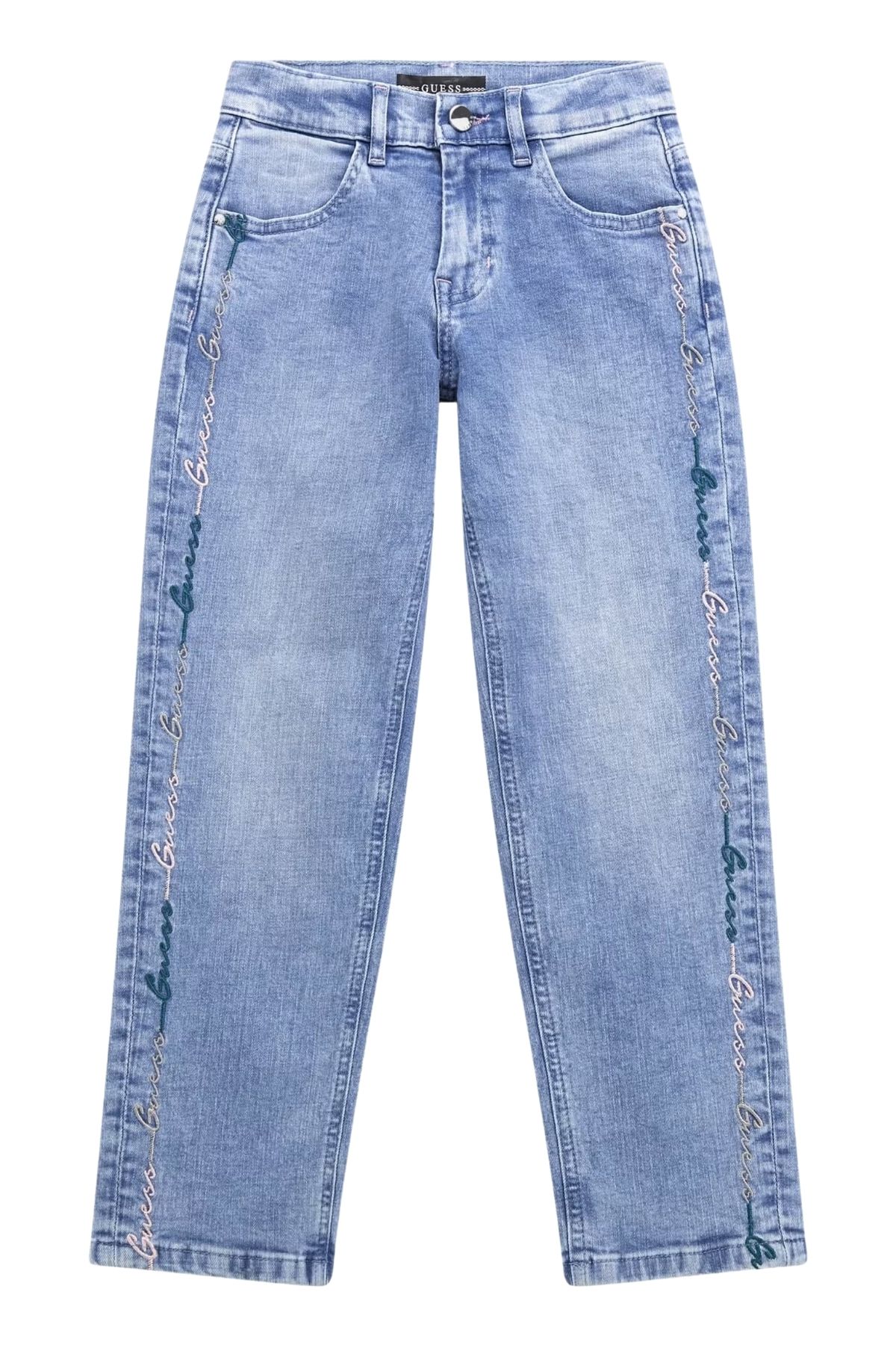 Jeans con logo ricamato all over
