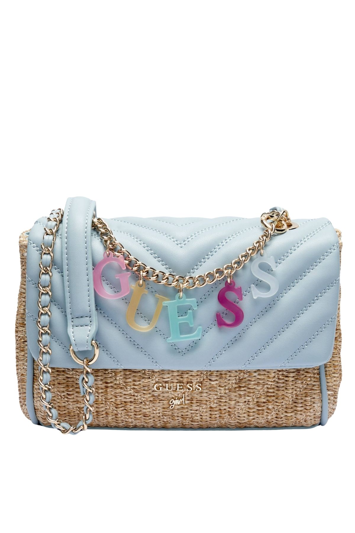 Logo in metallo e una lunga tracolla