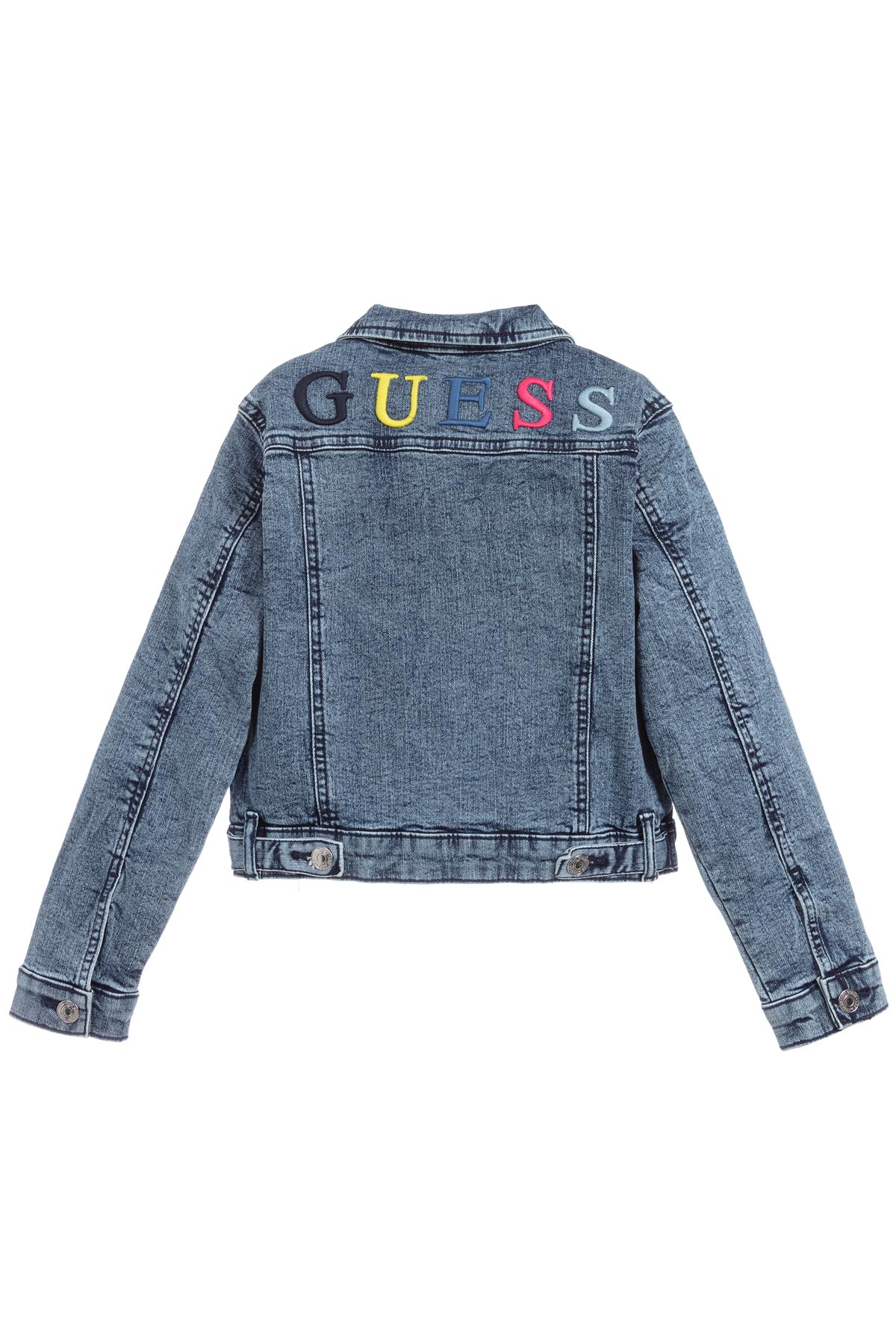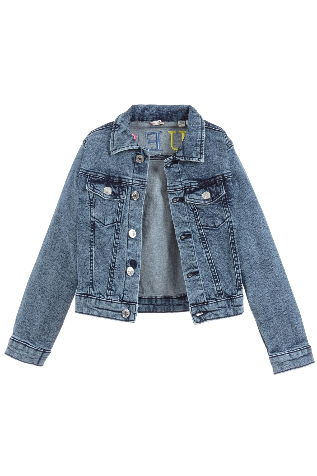 GUESS, Giacca giubbino jeans con logo in denim di cotone blu bimba bambina