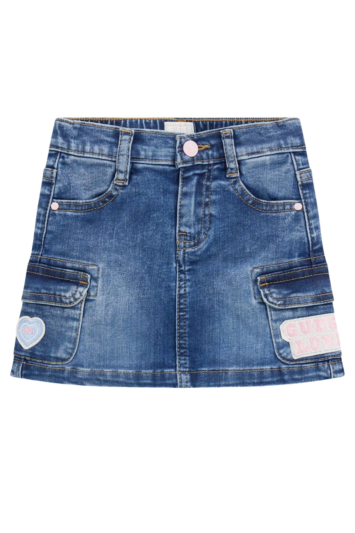 Gonna in denim In denim stretch con tasconi Chiusura con bottone e zipRealizzata in cotoneComposizione: 80% cotone 17% poliestere 3% elastan